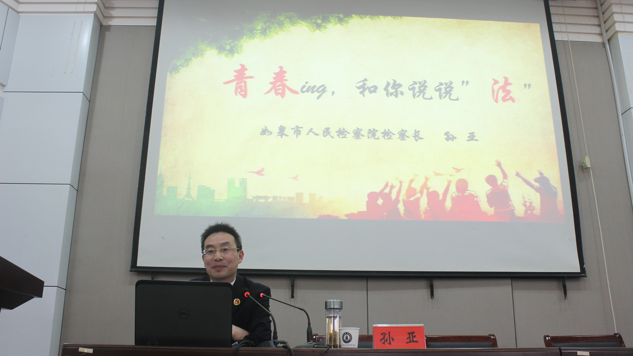 活动第三阶段,如皋市人民检察院党组书记、检察长孙亚同志做了一场题为《青春ing,和你说说“法”》的法治讲座。孙检察长从“我们为什么要学法守法”开题,围绕“法律离我们到底有多远”、“网络世界是法外之地吗”、“性侵害是难以启齿的痛吗”、“潜在风险get到了吗”、“检察院、检察官是做什么的”等五个问题一一展开,抽丝剥茧,向同学们娓娓道来。孙检察长的讲座诙谐生动、深入浅出、旁征博引、振聋发聩,既有法律知识的普及,又有法理知识的讲解,并通过真实的案例、有力的数据,给我们以警示和教育。
