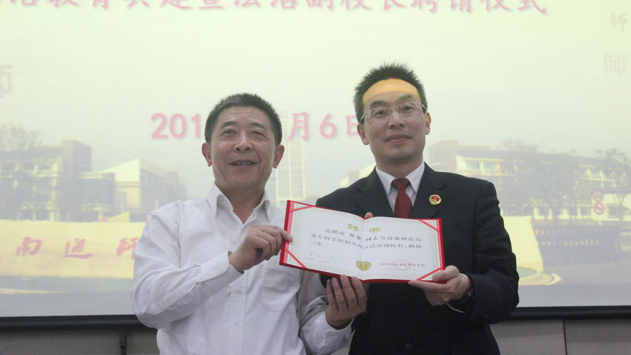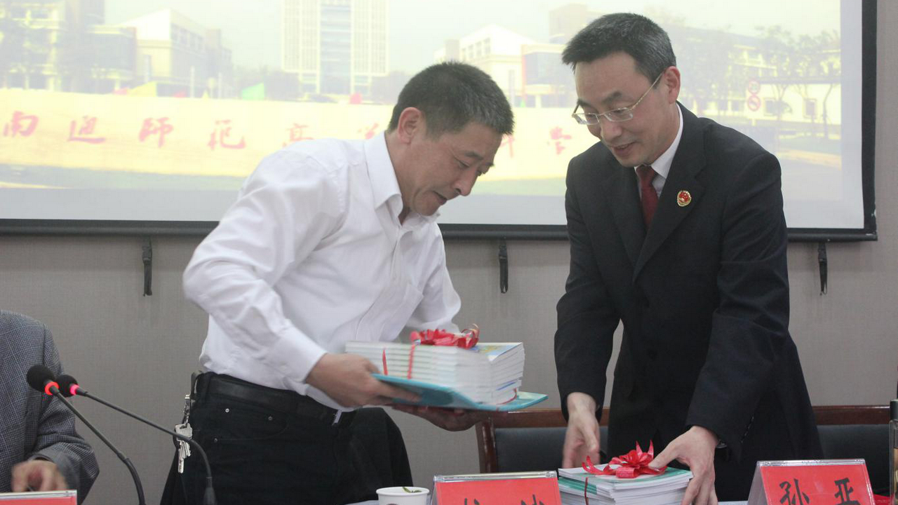 活动第二阶段,副校长杭斌首先宣读了聘请如皋市人民检察院党组书记、检察长孙亚同志担任我校如皋校区法治副校长的文件,并颁发了聘书。孙亚同志愉快地接受了聘任,并表示将履职尽责,做好法治副校长相关工作,实现检校共建谋双赢,真诚合作促发展的良好局面。 如皋市人民检察院还向学校赠送了普法方面的书籍资料。
