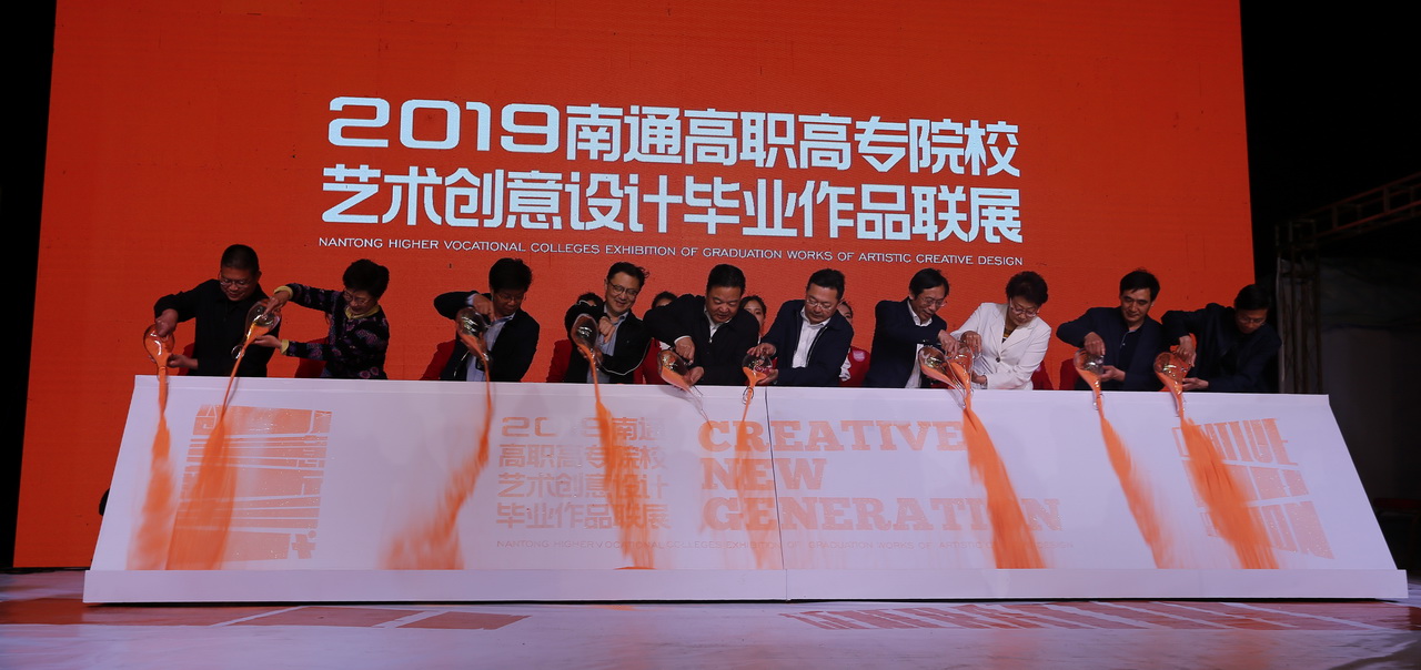 5月13日晚,2019“创意新生代”南通高职高专院校艺术创意设计毕业作品联展在南通五三美术馆开幕。南通市委常委、宣传部部长陆卫东,南通市委宣传部副部长、市文联主席王一鸣,南通市教育局副局长姜学勤,南通职业大学党委书记秦志林,江苏工程职业技术学院党委书记保刚健,南通航运职业技术学院党委书记袁卫国,江苏商贸职业学院党委书记任芳,南通师范高等专科学校党委书记刘锋,南通开放大学党委书记张建锋,南通科技职业学院副校长金卫东等领导嘉宾,全市七所高职高专院校的师生代表及相关人士、机构和媒体共同见证了本次活动。