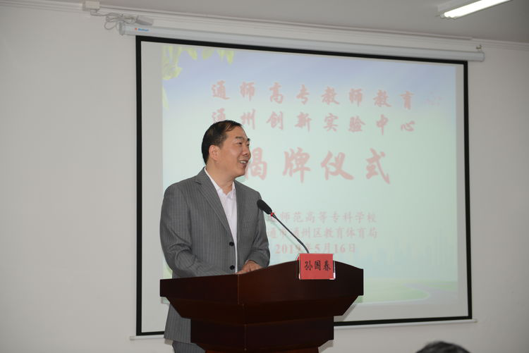 孙国春副校长代表通师高专对创新实验中心的揭牌表示热烈祝贺。他指出成立创新实验中心的目的是为贯彻落实《教师教育振兴行动计划(2018-2022年)》、《江苏省教师教育创新行动计划(2018-2022年)》精神,将通州区教师教育的优质实践资源和通师高专教师教育丰厚的理论资源,通过教师互聘、岗位互换、协同教研、专业咨询等有效方式,创新职前教师的培养模式,创新在职教师的研修模式,促进通州区教师和通师高专师范生的高质量共同发展。通州区教育体育局和通师高专有着良好的合作基础,创新实验中心是教师发展的发动机、加油站、服务区,双方通过优势互补,一定能结成累累硕果。同时,他期望双方进一步扩大合作领域和辐射范围,建成在全国具有示范意义的新时代教师教育的南通模式。