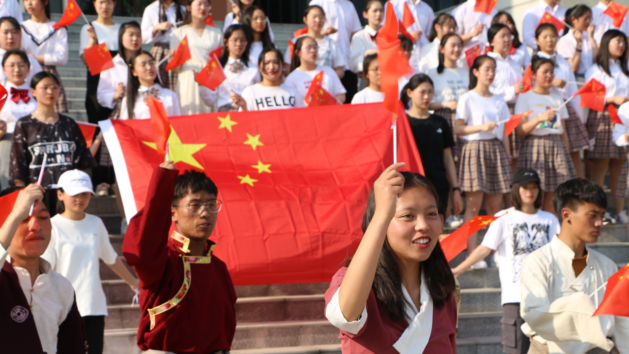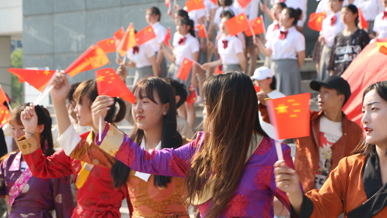 一首首短小明快的歌曲连接在一起,昭示着着强大而久远的生命力,渲染了整个广场的喜庆氛围和爱国情怀。此次快闪活动不仅锻炼和展示了同学们的专业基本功,更加彰显了新时代师范生朝气蓬勃、意气风发的青春风貌。作为新时代接班人,将不负韶华,勇担使命,努力学习,报效祖国。