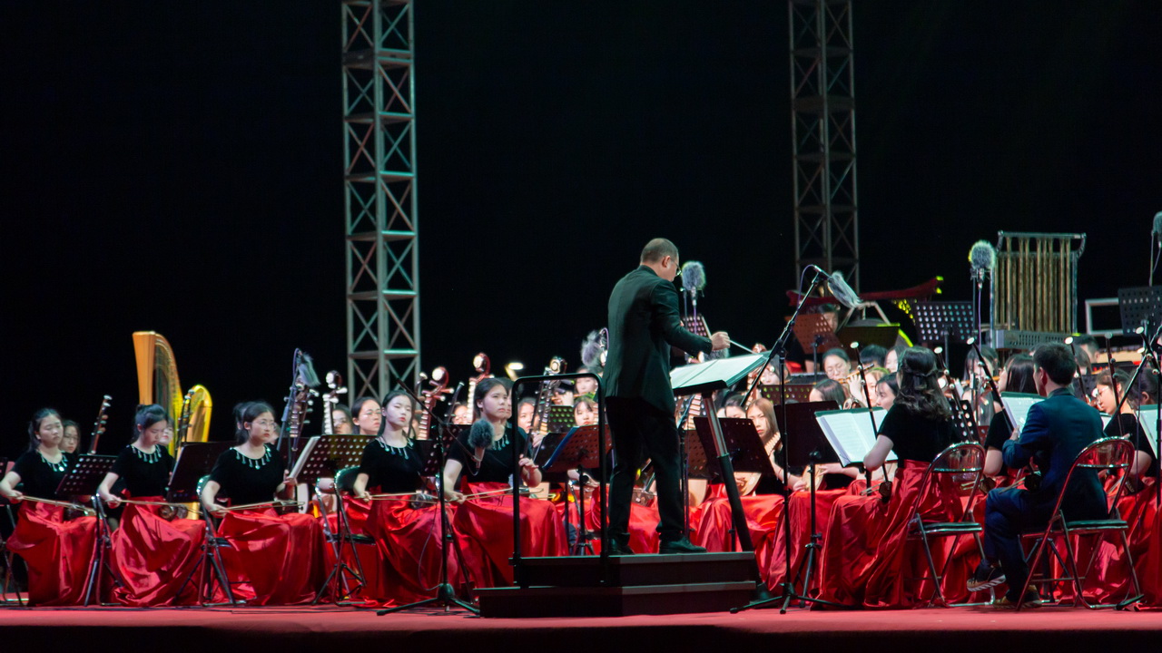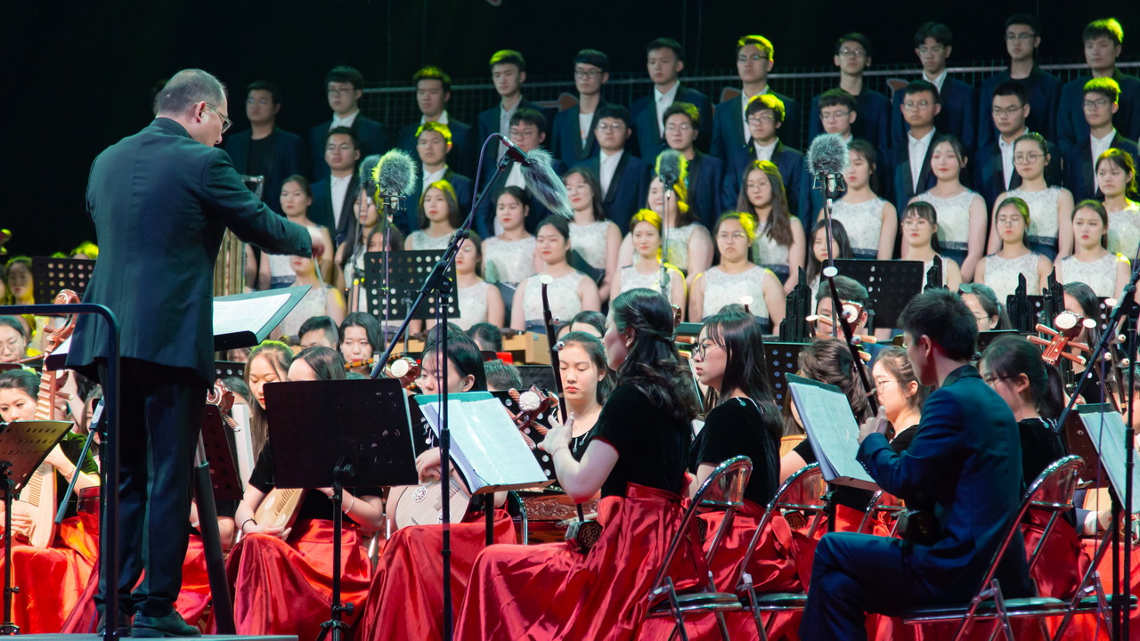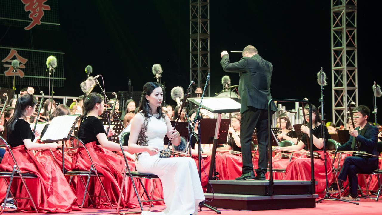 山随平野尽,江入大荒流。月下飞天镜,云生结海楼。五月,泛舟于春江之上,披着银白的月光,随风飘荡,时刻不忘我们心中的梦想。5月29日晚7:30,由音乐舞蹈学院百余名师生组成的南通青年民族交响乐团在指挥黄忠院长的带领下,于南通市滨江公园万人草坪举办了“我们的中国梦”民族交响音乐会。