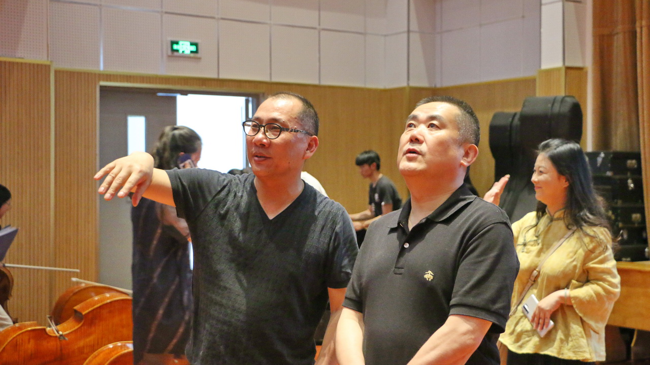 来宾现场观摩了南通市青年民族交响乐团的排练,黄忠院长介绍了乐团的硬件设施、业务建设、日常管理等情况。