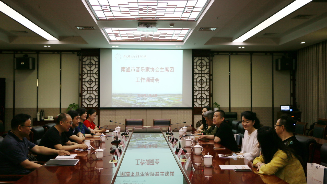 6月13日下午,南通广播电视总台台长、市音乐家协会主席张辉率市音乐家协会主席团一行六人,来我校考察调研。校党委书记刘锋、音乐舞蹈学院书记虞福美、院长黄忠、副书记张露、副院长戴俊超热情接待了到访来宾。
