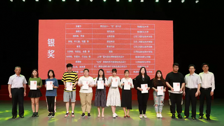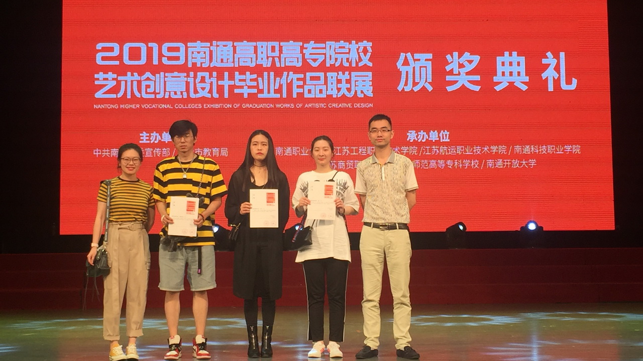 各院校参与2019“创意新生代”南通高职高专院校艺术创意设计毕业作品联展的毕业生共计1181人,经过初审复审,我校入选联展作品30组,最终装潢141班陈泽豪、美术142班梁昕合作的《你好南通》获得银奖,季非凡、汤玉、邹琪等3位同学铜奖,汪芳、周淑怡等9位同学优秀奖,陈纳维老师、张钟敏慧老师获优秀指导教师奖,学校获优秀组织奖。