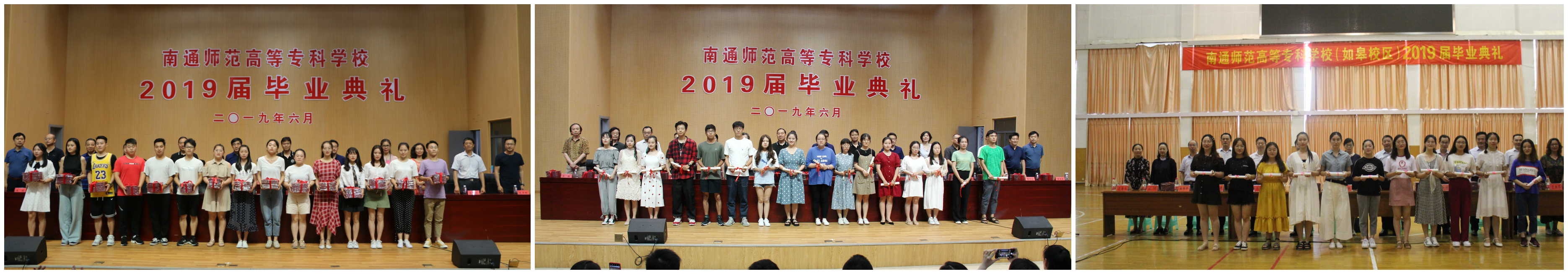 6月30日,我校分别召开新校区和如皋校区2019届毕业生毕业典礼。学校党政主要领导、各相关职能部门和学院负责人、全体班主任辅导员和毕业生参加了典礼。典礼开始前,毕业生分班级与学校领导和系部老师合影留念。自此,全校1647名毕业生谨记“坚苦自立、忠实不欺”校训,挥手告别母校,踏上人生新的征程,开启人生新的篇章。
