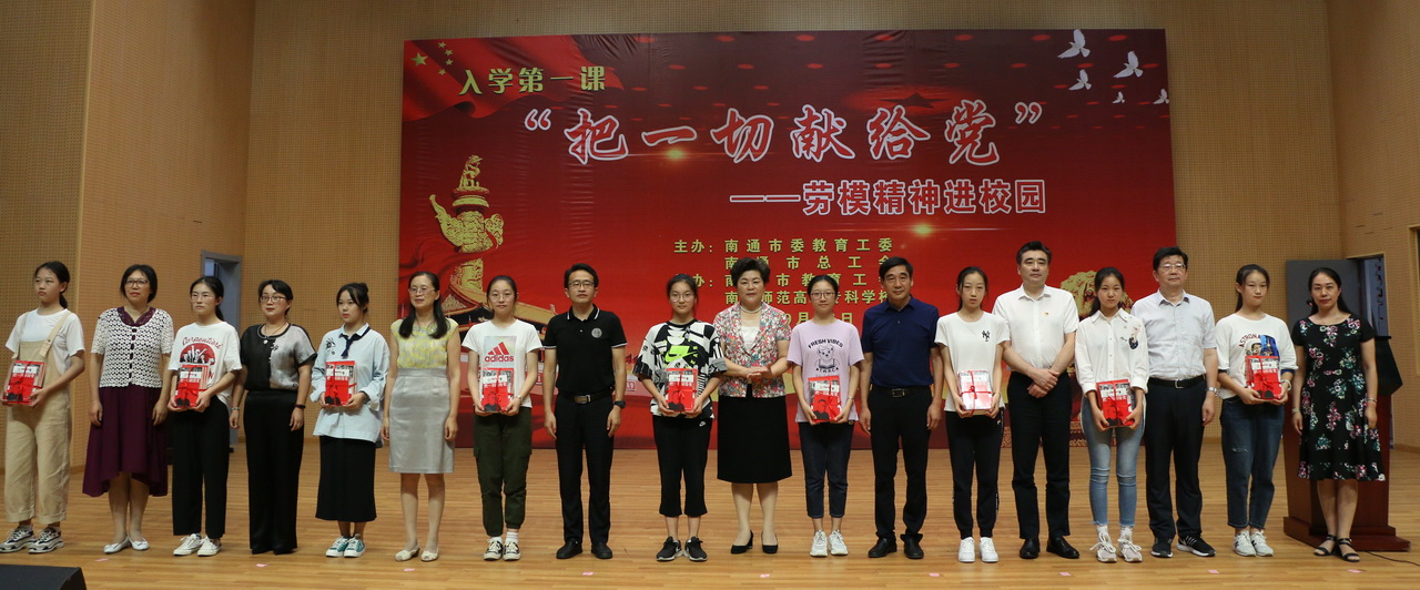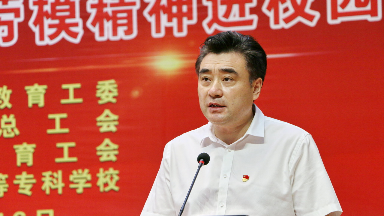 为贯彻落实全国教育大会和学校思想政治理论课教师座谈会精神,按照省总工会、省教育厅、省文明办《关于在全省广泛开展“劳模精神进校园”活动的意见》要求,市委教育工委、市总工会在我校2019级新生中开展“把一切献给党”劳模精神进校园宣讲活动。市人大常委会副主任、总工会主席葛玉琴,市总工会副主席黄燕,市教育工会主席张卫娟,市教育工委副书记杨晓岗,校党委书记刘锋,副校长都樾,校党委委员、组宣部部长魏荣华等领导出席,我校2019级新生及年级辅导员、班主任参加了此次活动。
