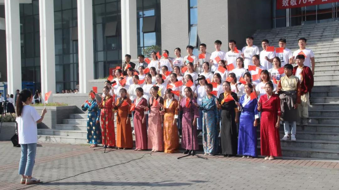音乐舞蹈学院的女子合唱团盛装出席,一首《我和我的祖国》唱出了青春的活力与希望,唱出了对新时代的信心与期望。她们满怀深情的演绎,将本次快闪活动推向了高潮。
