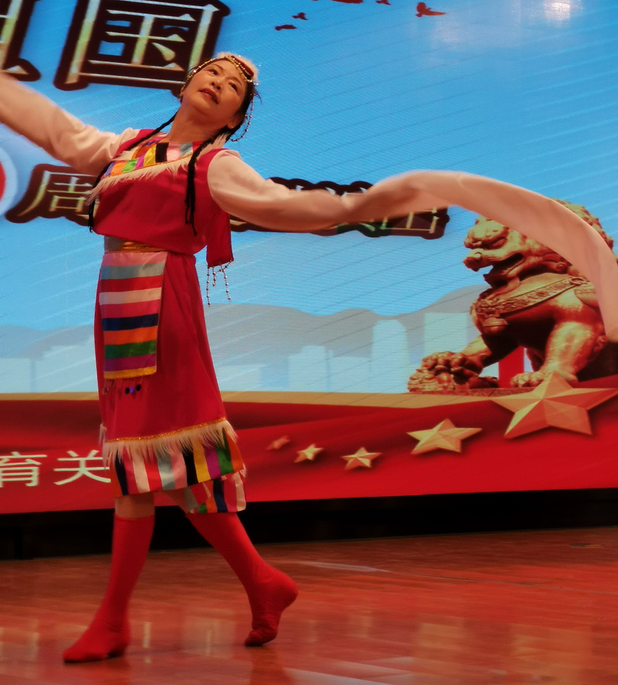 参加演出的都是退休教职工,他们中年纪最大的施维老师已八十六岁高龄。大家克服了身体不适、路途遥远等困难,怀着对伟大祖国的无比热爱之情,满腔热情地投入了紧张的排练。当登上舞台的那一刻,老同志们个个神采奕奕,声情并茂,引吭高歌。他们用歌声和舞姿传递了通高师人对伟大祖国的由衷赞美之情,他们用歌声和舞姿表达了通高师人昂首阔步走向新辉煌的豪情壮志!