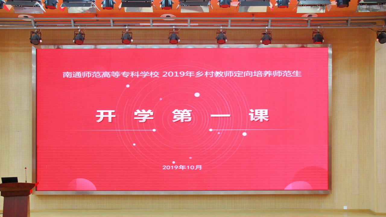 10月9日上午,“南通市2019年五年制专科乡村教师定向培养师范生开学第一课”活动在我校图文信息中心小报告厅举行。南通市教育局领导及相关职能部门负责人,县(市、区)教育局领导,我校领导及相关职能办处、学院负责人,2019级全体定向师范生参加了本次活动。