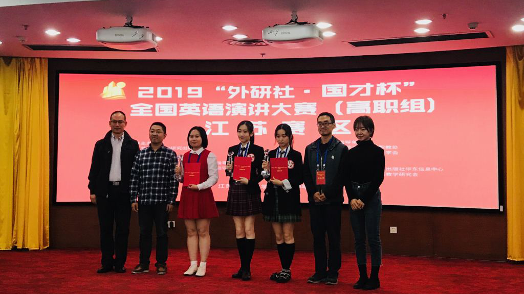 2019年11月8日,由外语教学与研究出版社等部门主办的2019“外研社·国才杯”全国英语演讲大赛(高职组)江苏赛区比赛在江苏开放大学举行,来自江苏各地区六十多所院校的188名选手展开了激烈角逐。继去年我校选手包揽三个特等奖后,今年,初教院低年级选手小教18(2)班丁林林、小教18(1)班吴子晗、小教18(2)班石雨分别荣获特等奖、一等奖和二等奖的好成绩!初生牛犊不怕虎,面对与其他选手的年龄差距,三位小将处变不惊,以一身从容将青春的希冀化作前进的动力,用实力延续了我校选手多年来在该项比赛中的辉煌战绩,用汗水诠释了通师精神!