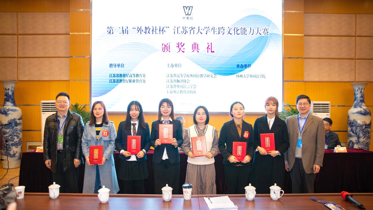 11月20日,在江苏省教育厅高等教育处和职业教育处的指导下,由江苏省高等学校外国语教学研究会、江苏省翻译协会、江苏省外国语言学会、上海外语教育出版社共同主办的江苏省第二届“外教社杯”大学生跨文化交际能力大赛决赛在扬州大学举行。我校2018 级小学教育专业(2)班丁林林同学在比赛中力挫群雄,取得高职组一等奖第一名的好成绩!