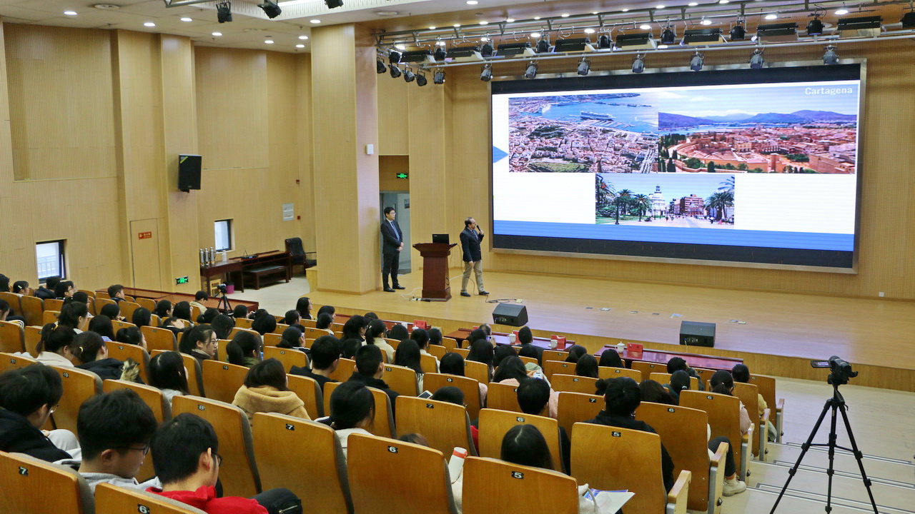下午,来访嘉宾在刘锋书记的陪同下参观了音乐舞蹈学院排练现场,随后参观了我校校史馆。副校长José Carlos Soto Gόmez先生在新校区小报告厅为我校学生开设了西班牙文化专题讲座,报告厅内座无虚席,师生互动踊跃。