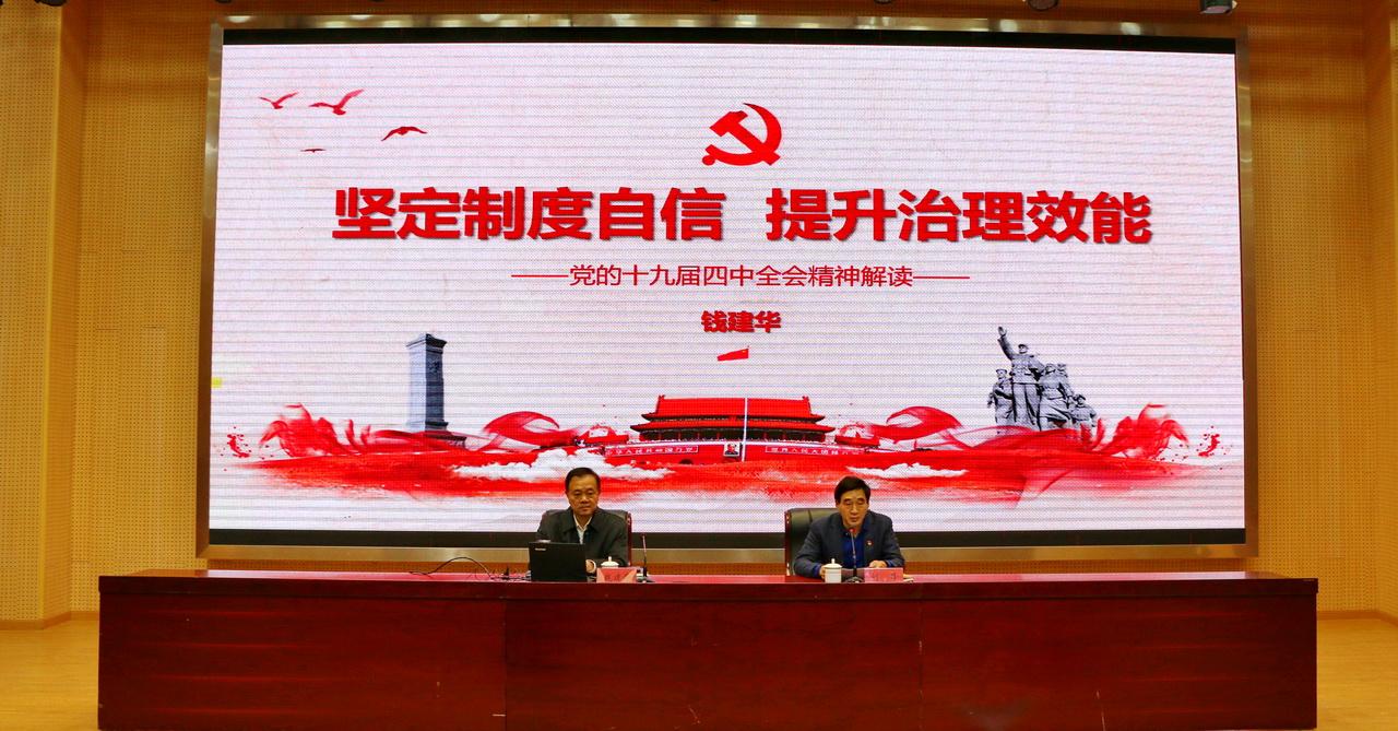 12月5日,市委宣讲团成员、市委政法委常务副书记钱建华赴南通师范高等专科学校,为全体干部及党校学员详细解读党的十九届四中全会精神。钱建华围绕学习贯彻党的十九届四中全会精神这一主题,系统阐述全会的重大意义及主要精神,详细解读此次全会的“9个新提法”及“释放中国之治最强信号的14个关键词”,同时就如何学习贯彻落实好全会精神进行详细具体指导。宣讲会结束后,钱建华还和学校干部们进行座谈,就完善中国特色社会主义制度、推进国家治理体系和治理能力现代化、坚持和完善党和国家监督体系、加强法律实施监督等问题进行深入探讨。