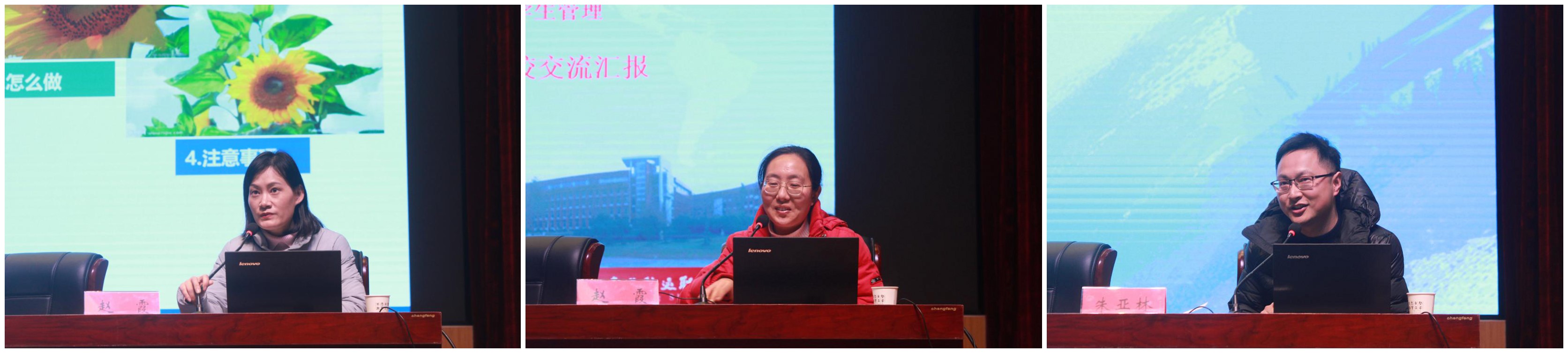 上午,学前教育第二学院副书记石瑀以《立德树人 三全育人 我们在路上》为题,从汉藏一家,爱心与智慧接力;红专并进,生命与使命同行;志愿服务,理论与实践互促;常规管理,长效与阶段齐抓;书香致远,阅读与传承缔结;学工队伍,立德树人能战斗等方面介绍了学院学生工作的开展情况。华东政法大学在读博士金华以《依法治校视阈下高校危机治理中的法律风险与防范》为题,分别从校园危机分类、危机事件中高校与学生的法律关系、学校与辅导员在实践中面临的潜在法律风险、高校危机事件中法律风险的防范与纾解等方面做了交流。我校资深班主任马咏老师以《爱和鼓励,助他们越飞越高》为题,回顾了九二级大专班等自己所带班级学生的成长故事,分享了她坚持爱和鼓励的教育经验和实践。财务处杨处长围绕财务处如何开展“服务育人”做了交流发言。