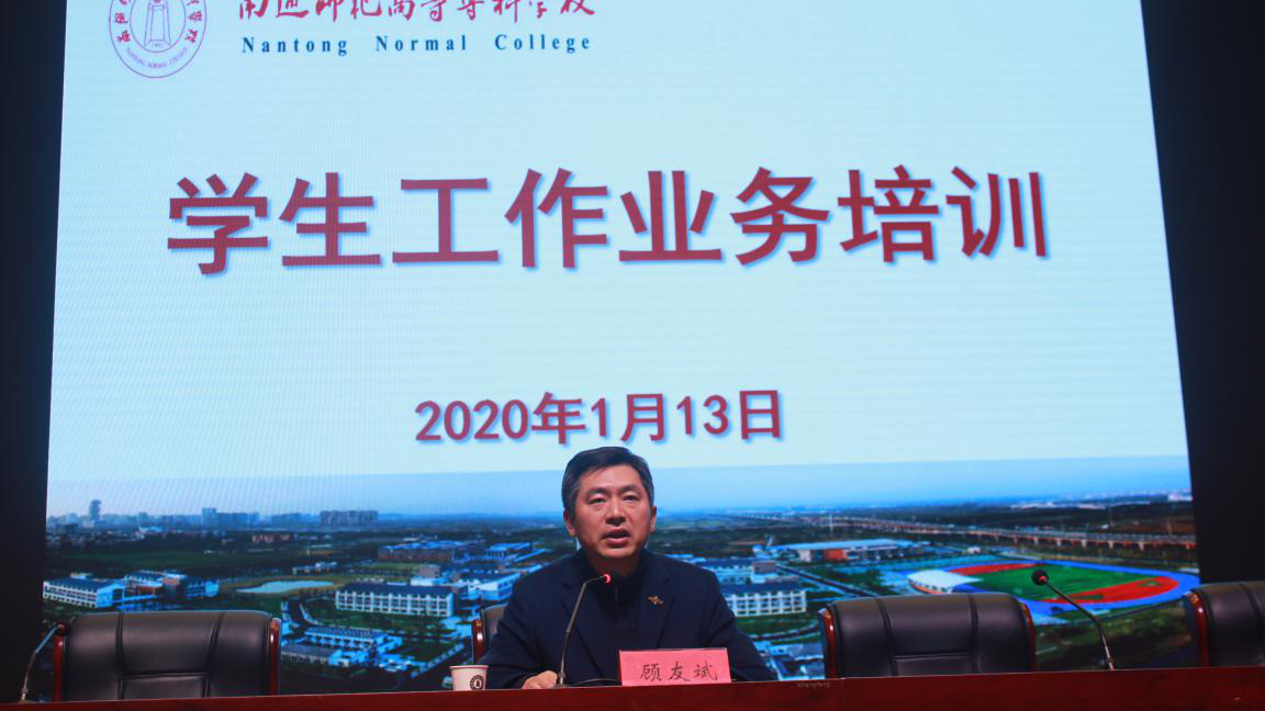 为提高辅导员、班主任队伍专业化职业化建设水平,广泛凝聚把立德树人作为根本任务、把思想政治工作贯穿教育教学全过程的共识,学校于1月13日全天举办了学生工作业务培训。本次培训的对象有各学院分管学生工作领导、团总支书记、专兼职辅导员、班主任及学工处、团委全体同志,培训由学工处处长顾友斌主持。