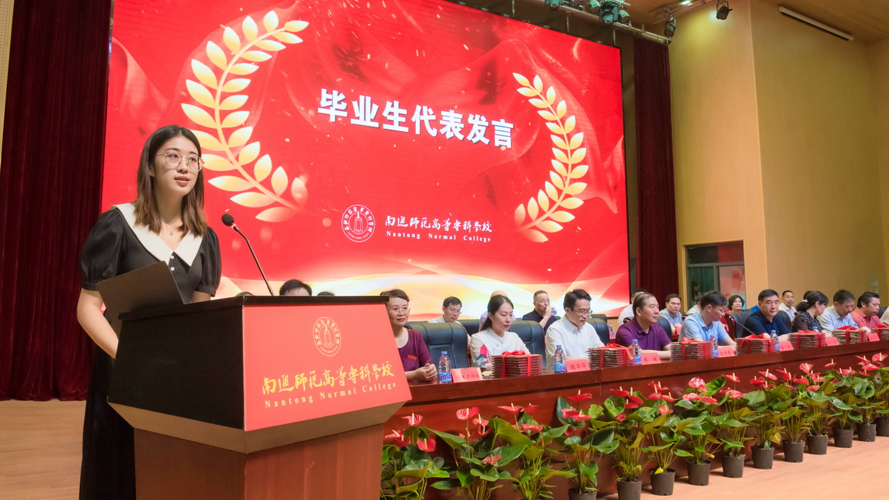 “通师学子聚是一团火,散是满天星。”2015级小学教育理科班的韩晨晨同学代表1960名毕业生发言,她深情回顾了在校期间的成长进步和人生感悟,情真意切地感谢母校培养、感谢老师关爱、感谢同学陪伴,并表示要继续秉承“志诚报国、厚德树人、开放包容、敬业求真”的通师高专精神,塑师德情怀、强知识技能,不忘初心、不负韶华,在今后工作和学习中彰显当代青年应有的创新精神和职业担当。