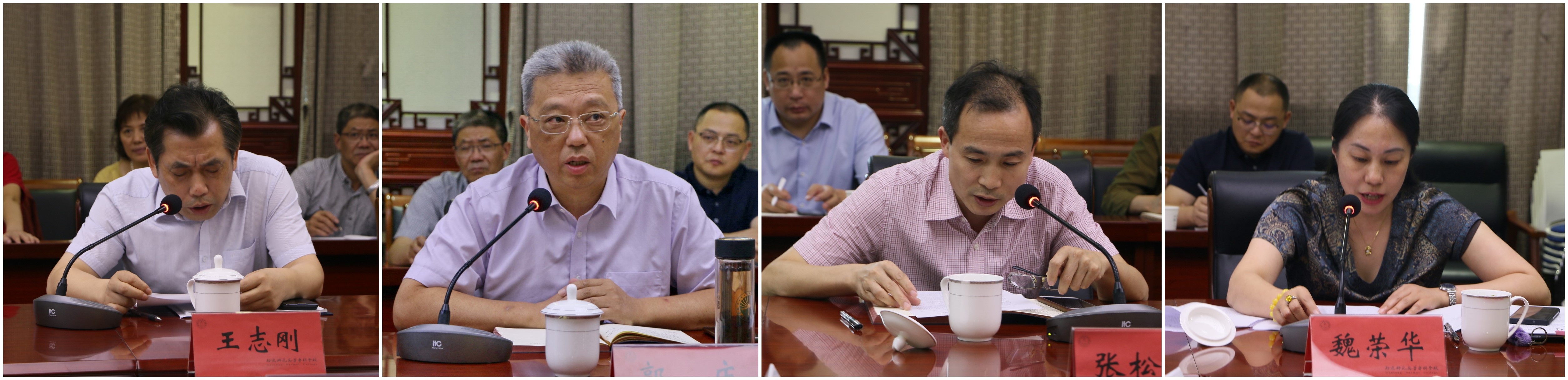 学校领导班子成员、各学院支部书记先后汇报了上半年落实全面从严治党工作履职情况。