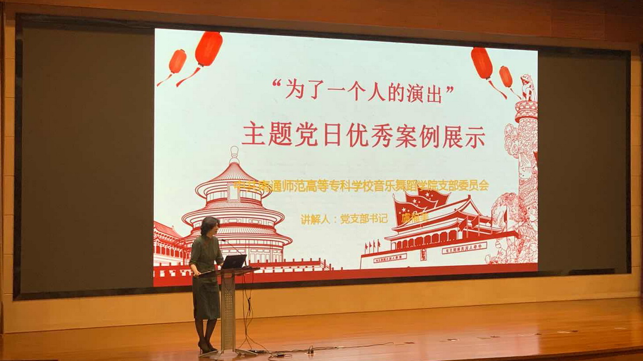 为严格党的组织生活制度,推进“三会一课”数量质量能量“三量齐升”,7月29日下午,由南通市委组织部举办的全市主题党日优秀案例集中交流活动在市行政中心二楼报告厅举行。我校音乐舞蹈学院党支部报送的主题党日优秀案例“为了一个人的演出(系列活动之一)”参加交流,在29家参评主题党日活动中脱颖而出,名列第一。