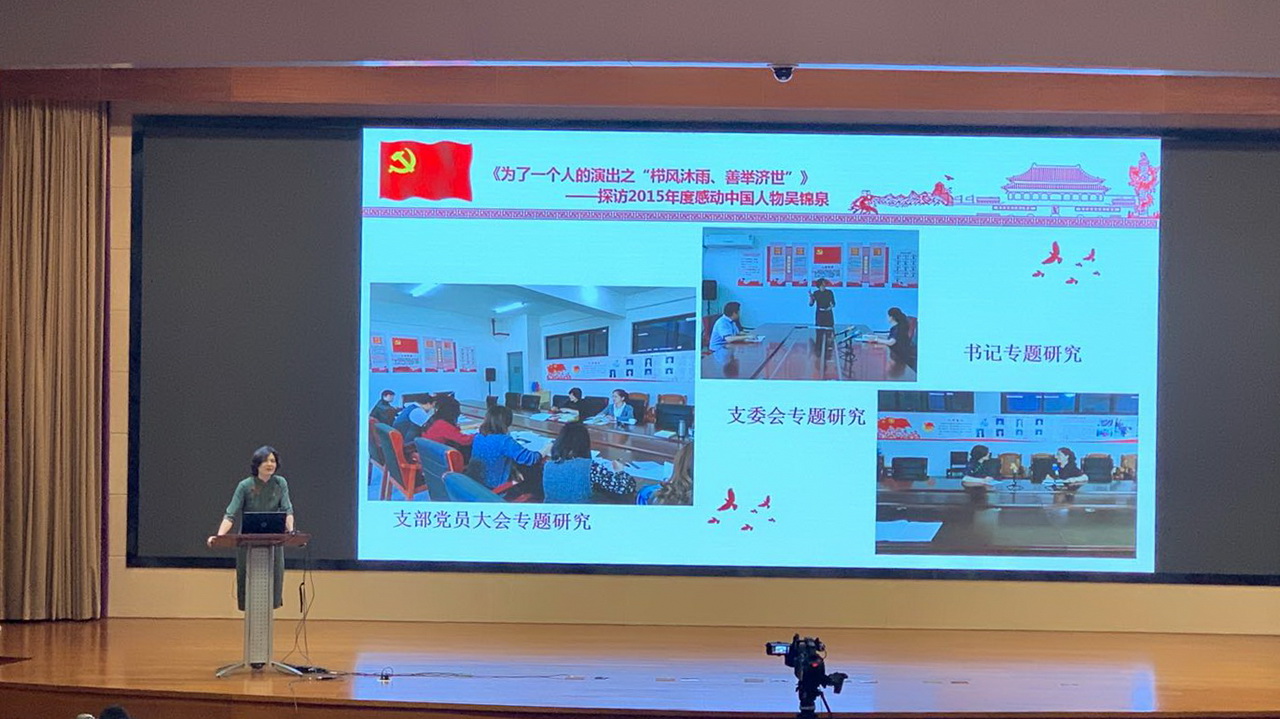 活动现场,音乐舞蹈学院党支部书记虞福美全面生动地展示了在2015年度感动中国人物吴锦泉老人家开展的《为了一个人的演出之“沐雨栉风、善举济世”》主题党日活动。宣讲从设计思路、实施过程、特色成效、社会影响等方面详细阐释了活动的内涵价值和时代意义,得到现场领导、评委和观众的肯定与赞美。市级机关工委副书记俞雷在点评中给予“为了一个人的演出”党日活动高度评价,认为音乐舞蹈学院党支部结合自己的专业特色,形式新颖、富有感染力,支部党员深入基层、不忘教育初心、勇担育人使命。