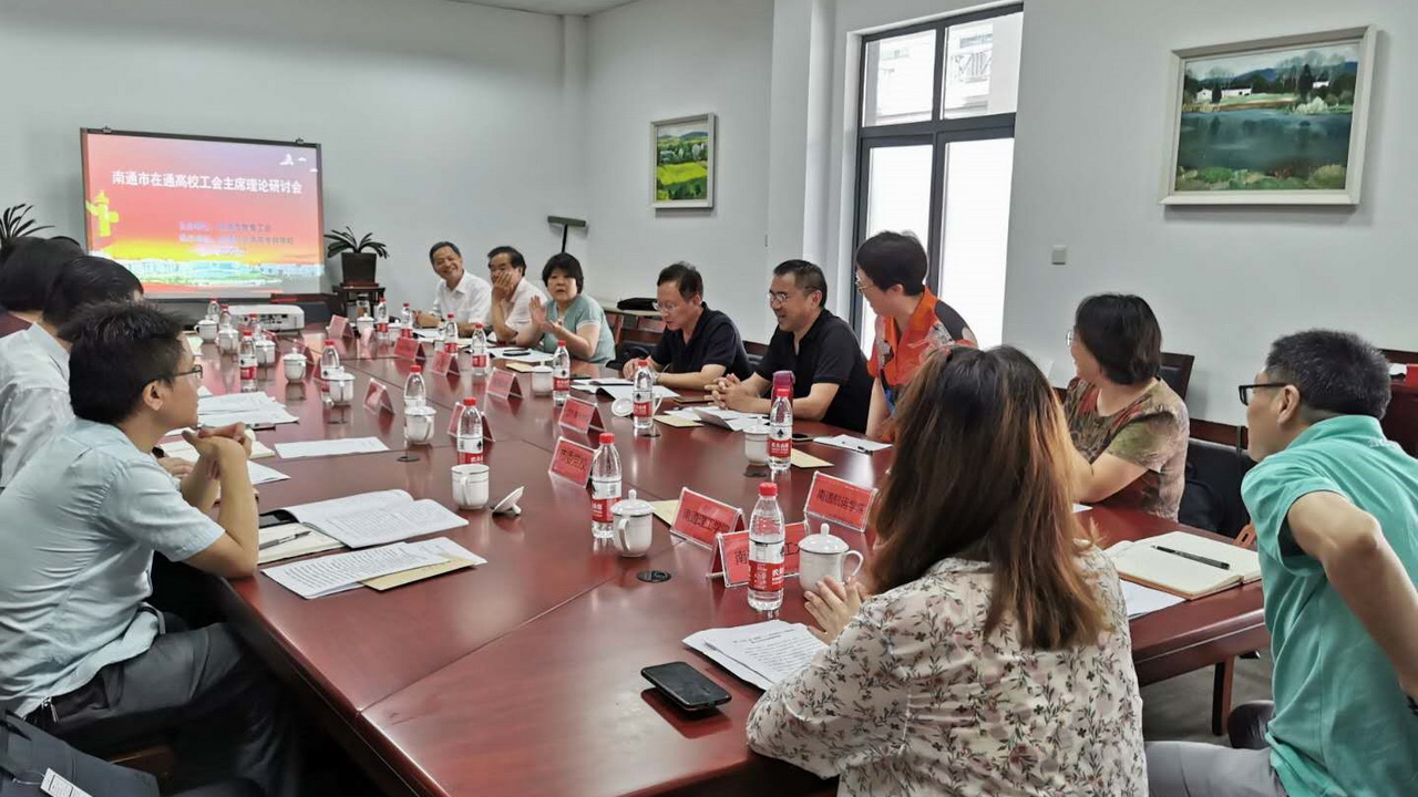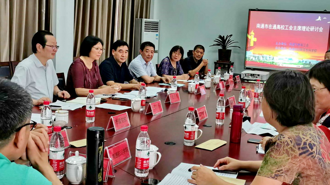 7月30日下午,在通高校工会主席理论研讨会在我校主校区时孙楼105会议室举行。市教育工会主席张卫娟、副主席祁向东,我校党委书记刘锋、副校长杭斌、工会主席杨肖虎和其他11位在通高校工会主席等参加了本次研讨会。会议由南通教育工会兼职副主席、通大工会主席王芳同志主持。我校党委书记刘锋同志致欢迎辞,对兄弟院校各位领导和老师的到来表示热烈欢迎。