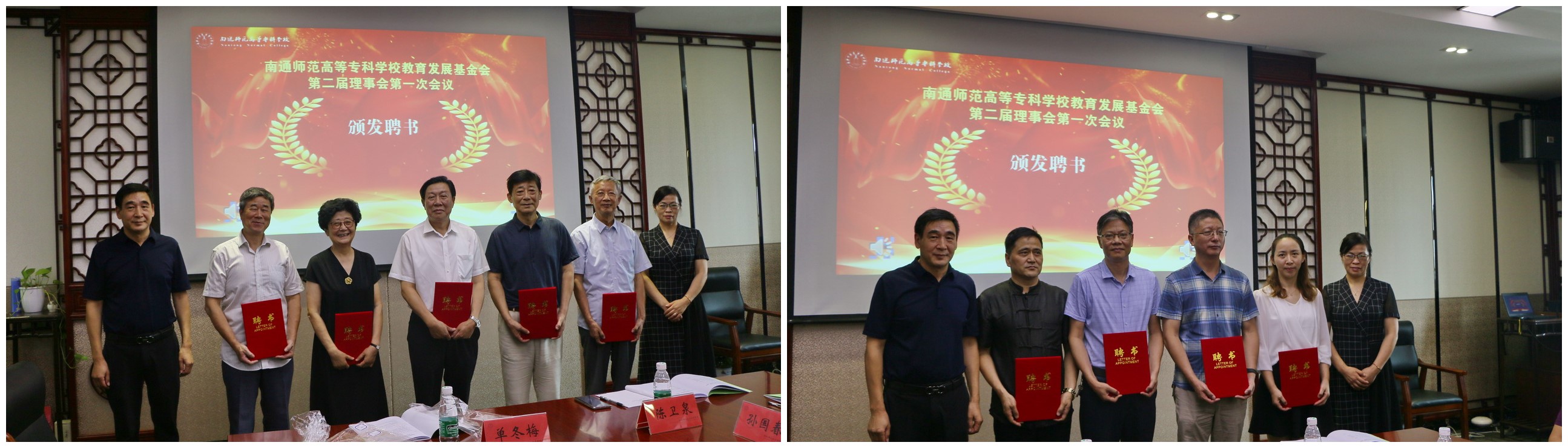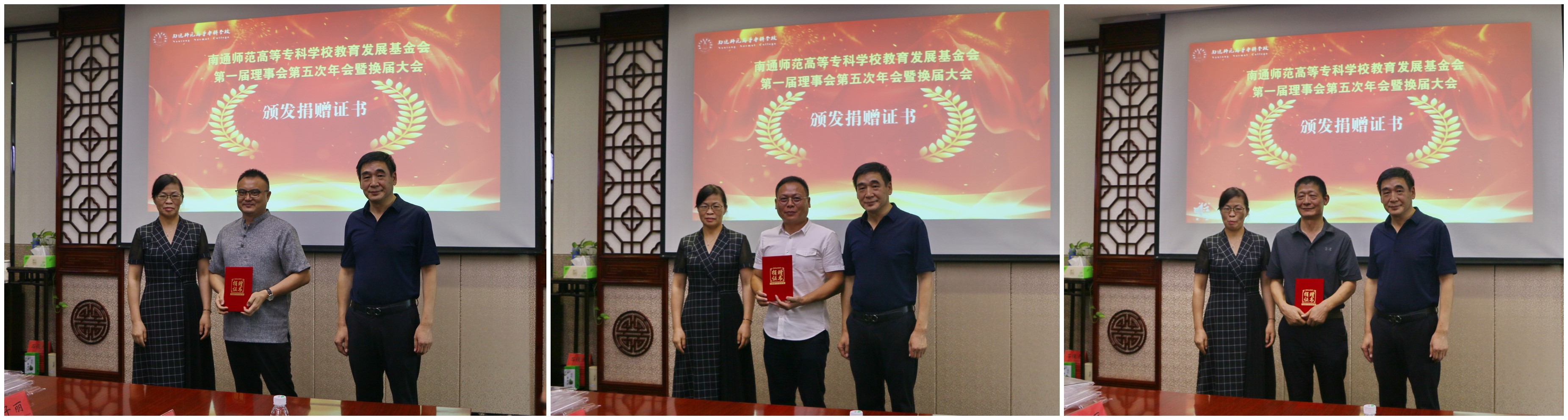 换届大会后,基金会第二届理事会召开第一次会议。学校党委书记刘锋主持会议,学校党委副书记、校长朱月萍致辞。会议审议通过了《南通师范高等专科学校教育发展基金会章程》(修订稿),以无记名投票方式选举产生了理事长、副理事长、秘书长。刘锋同志为基金会理事长,朱月萍、丁兆雄、王志刚、陈森、姜熊烽、郭小平六位同志为副理事长,陈继红同志为秘书长。基金会聘请张慎欣、黄建辉同志为名誉理事长,李刚、陈情、沈行恬、吕静、李崇莹五位同志为顾问。潘健同志被监事会推选为监事会主席。刘锋同志、朱月萍同志为新一届名誉理事长、顾问、理事长、秘书长、理事和监事颁发聘书。会议审议并通过了《南通师范高等专科学校教育发展基金会第二届理事会第一次会议决议》。