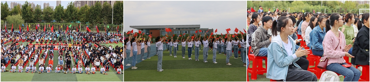天高云淡,彩旗飘飘,团体操表演《向快乐出发》热情洋溢,活力四射,展现了刚柔相济的专业美感;“我和我的祖国,一刻也不能分割……”悠扬深情的歌声在空中久久回荡,赤诚的爱国情怀熊熊燃烧,怀揣着青春梦想乘风破浪。
