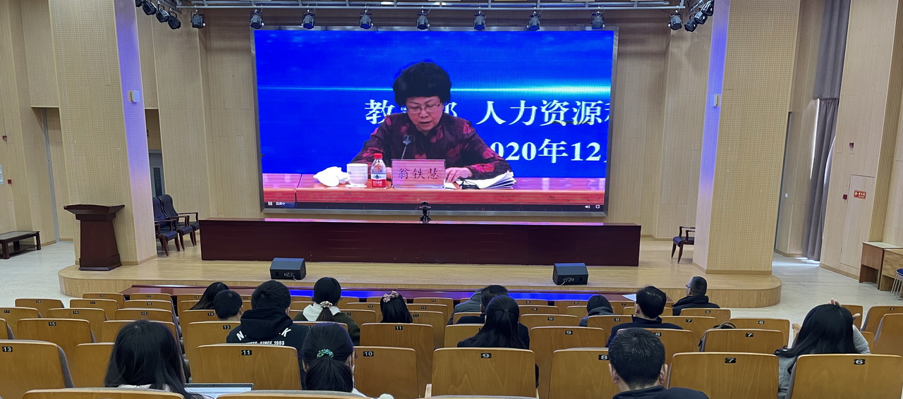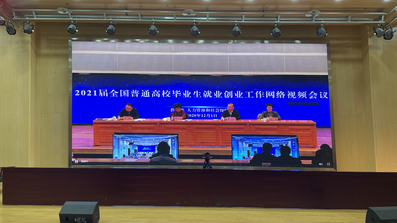 为深入贯彻党中央、国务院关于高校毕业生就业创业工作的决策部署,深入分析当前高校毕业生就业形势,全面动员部署2021届全国普通高校毕业生就业创业工作,确保高校毕业生就业工作大局稳定,12月1日,教育部、人力资源社会保障部在京共同召开2021届全国普通高校毕业生就业创业工作网络视频会议,我校在图文楼小报告厅设立分会场,教务处、学工处、招就处部门负责同志,各二级学院就业工作负责人,全体2021届毕业生班辅导员参加了网络视频会议。