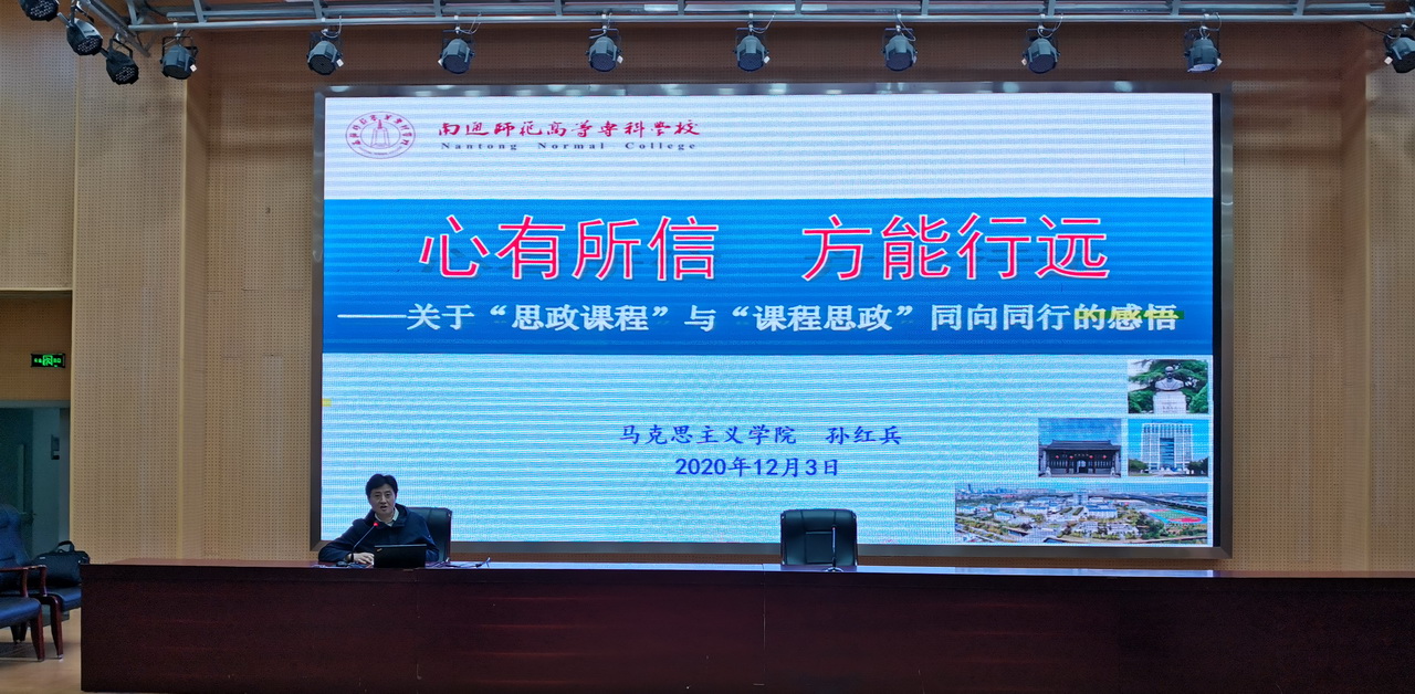 为深入贯彻落实习近平总书记关于教育的重要论述和全国教育大会精神,贯彻落实中共中央办公厅、国务院办公厅《关于深化新时代学校思想政治理论课改革创新的若干意见》,全面落实教育部印发的《高等学校课程思政建设指导纲要》,把思想政治教育贯穿人才培养体系,全面推进高校课程思政建设,发挥好每门课程的育人作用,提高高校人才培养质量,我校于10月27日、10月29日、12月3日分别在如皋校区、南通校区、开发区校区开展了课程思政师资专题培训。