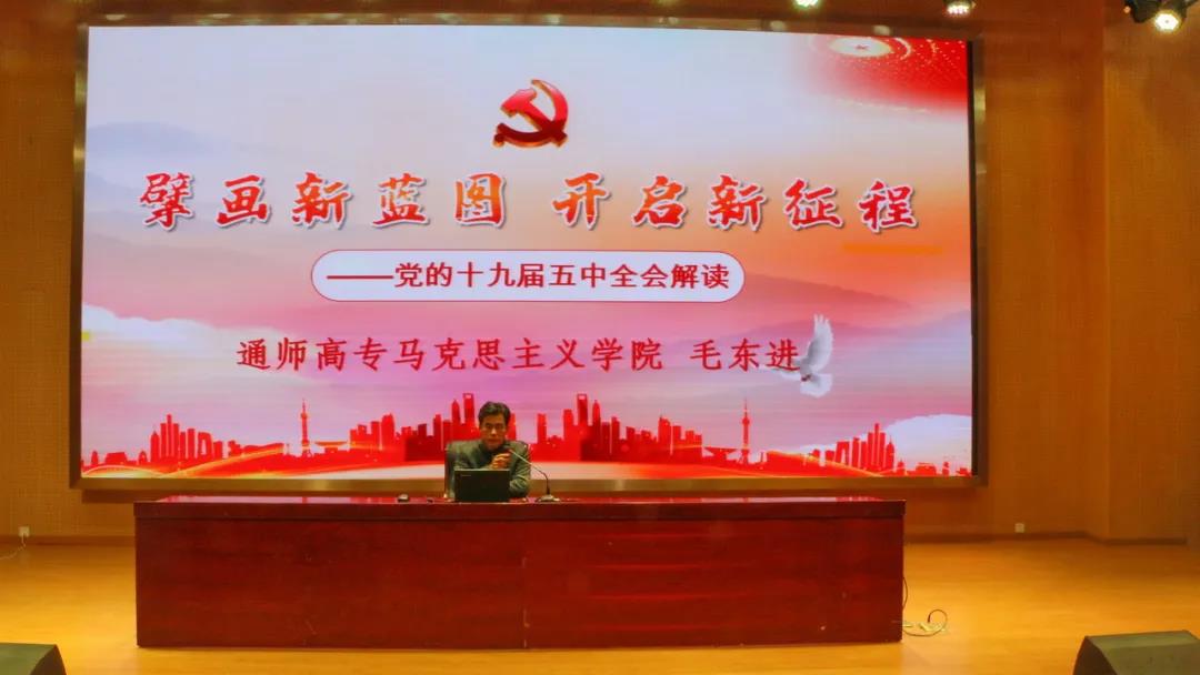 开讲仪式结束后,马克思主义学院马克思主义理论教学部主任毛东进开启了“初心讲堂”在开发区校区的首场讲座《擘画新蓝图,开启新征程——党的十九届五中全会解读》。