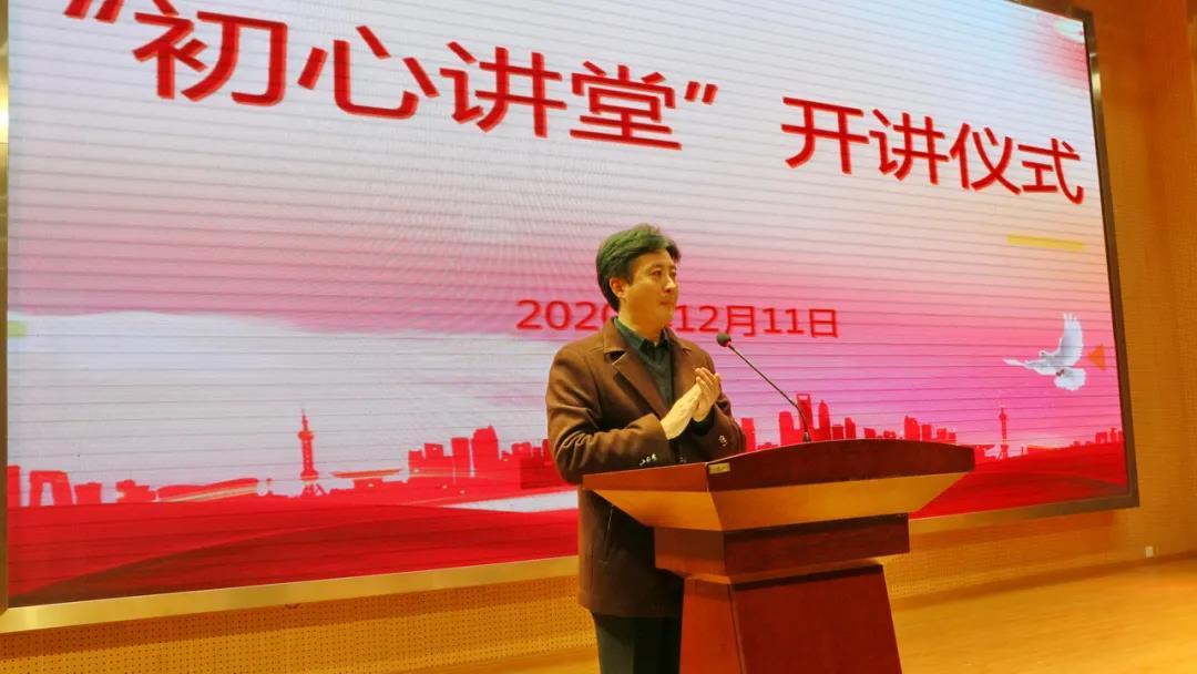 为贯彻落实中共中央、国务院《关于加强和改进新形势下高校思想政治工作意见》,深入推进“不忘初心,牢记使命”主题教育实践活动在基层的常态化,打造宣传习近平新时代中国特色社会主义思想的重要窗口,学校组织宣传部、马克思主义学院等部门和单位共同创建“初心讲堂”。12月11日下午,在开发区校区图文信息中心一楼小报告厅隆重举行开讲仪式,党委书记刘锋,党委副书记、纪委书记潘健,党委委员、组织宣传部部长魏荣华参加活动。仪式由马克思主义学院院长孙红兵主持。