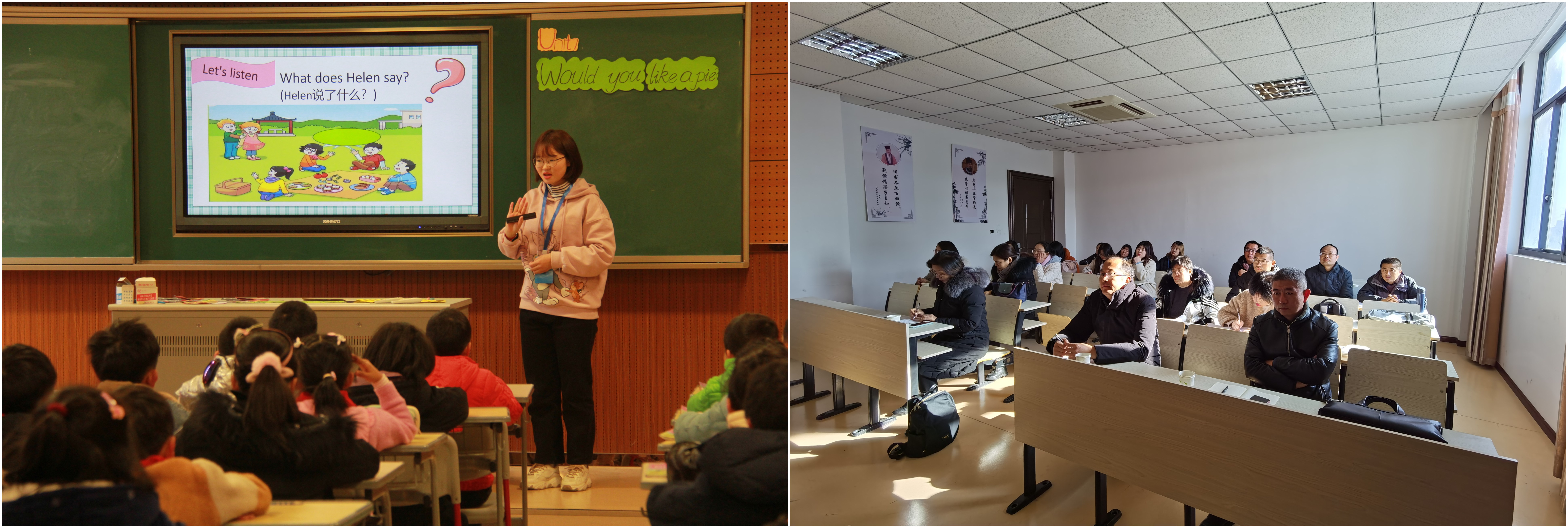 会后,调研小组还听取了英语专18吴鹏程同学的校级实习汇报课,并参与了课后点评活动。