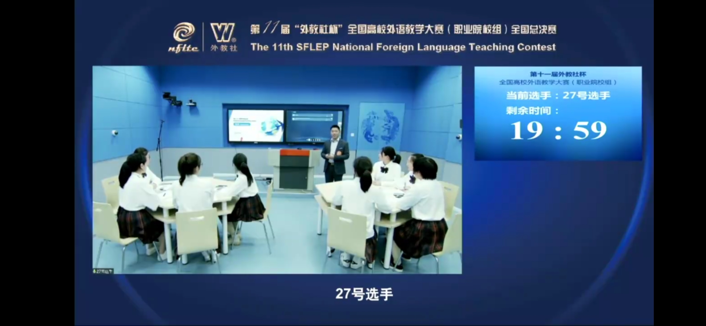 4月8日—9日,第十一届“外教社杯”全国高校外语教学大赛(职业院校组)全国总决赛隆重举办。本届总决赛首次采用选手在线授课、评委线下评审、全国同步直播的形式,是线上线下融合比赛的一次成功尝试。有超过3,000人次在线观看了大赛直播。大赛分为授课组和微课组两个组别。授课组比赛于2020年4月启动,在28个分赛区进行复赛,最终28位选手代表各分赛区进入全国总决赛。