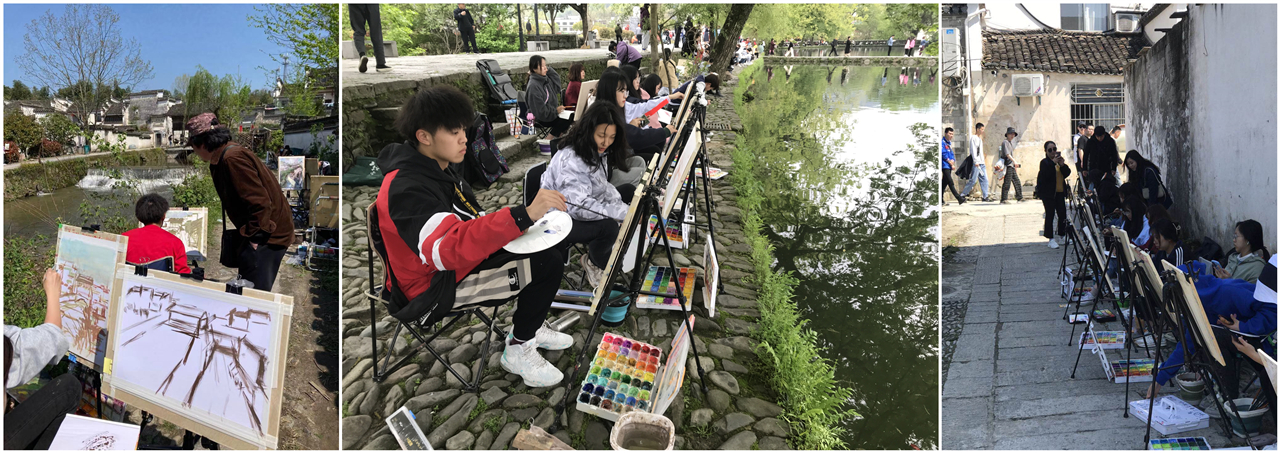 4月6日至12日,美术学院组织美术教育和艺术设计2020级184名学生赴安徽宏村进行艺术实践课程教学,陈竹林、王人佼、袁远、纪祥等老师带队并指导学生艺术实践。
