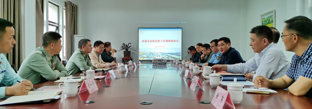 5月8日上午,南通市委常委、军分区司令员周建新,市教育局副局长姜学勤,军分区动员处处长蒋越飞、参谋翁一平, 市教育局人武部部长顾莹 一行5人,莅临我校开展高校武装工作专项调研和座谈。崇川区区长黄卫锋、副区长谢小兵、区人武部部长皮文军、军事科科长徐玮陪同调研。学校党委书记刘锋,党委委员、副校长杭斌,党委委员、副校长都樾及相关部门负责人参加了调研和座谈。