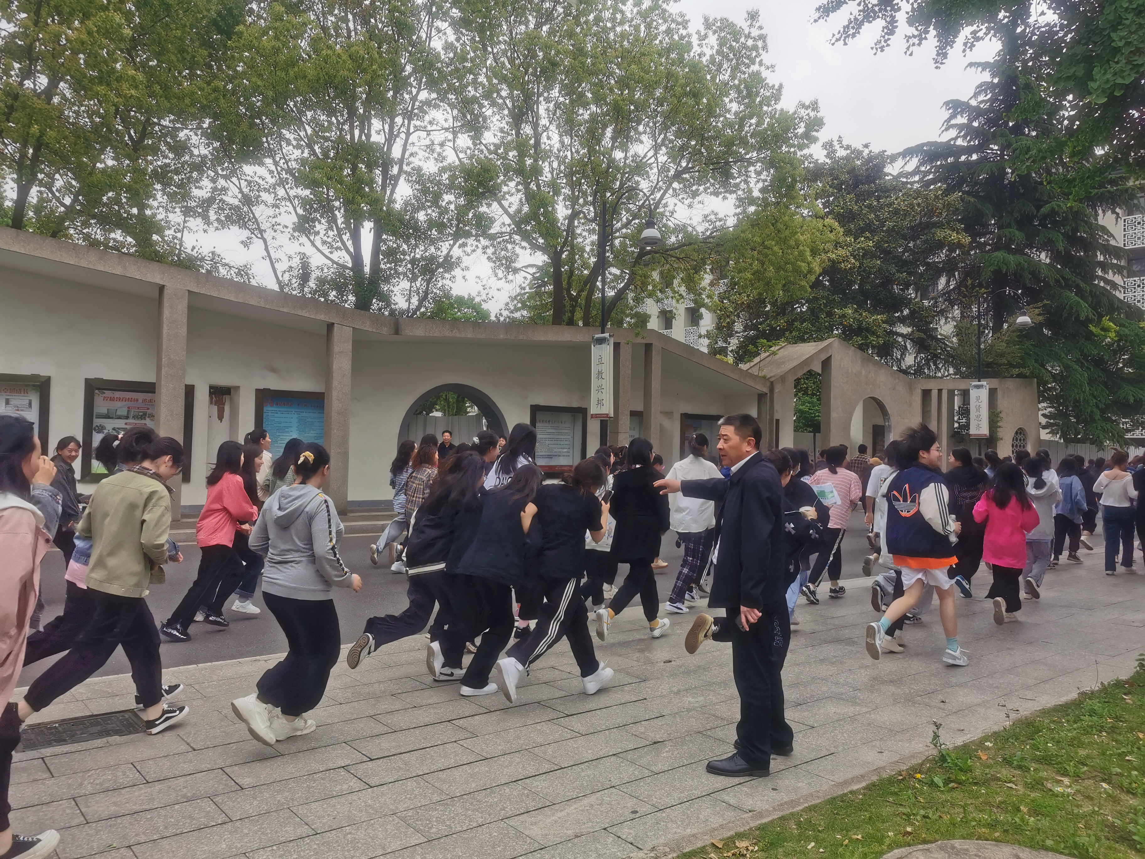 随着急促的警报铃声响起,现场总指挥、学院书记杨建新发出紧急避险指令,学生们在任课老师和班级安全员指导组织下,迅速护住头部躲在教室课桌下紧急避震。随着杨书记第二次指令信号发出,学生们在老师带领下按照应急预案设定的疏散逃生路线,快速而有序地从各班撤离到应急避难点指定位置。整个过程紧张有序、忙而不乱、实用性强,收到了预期效果。
