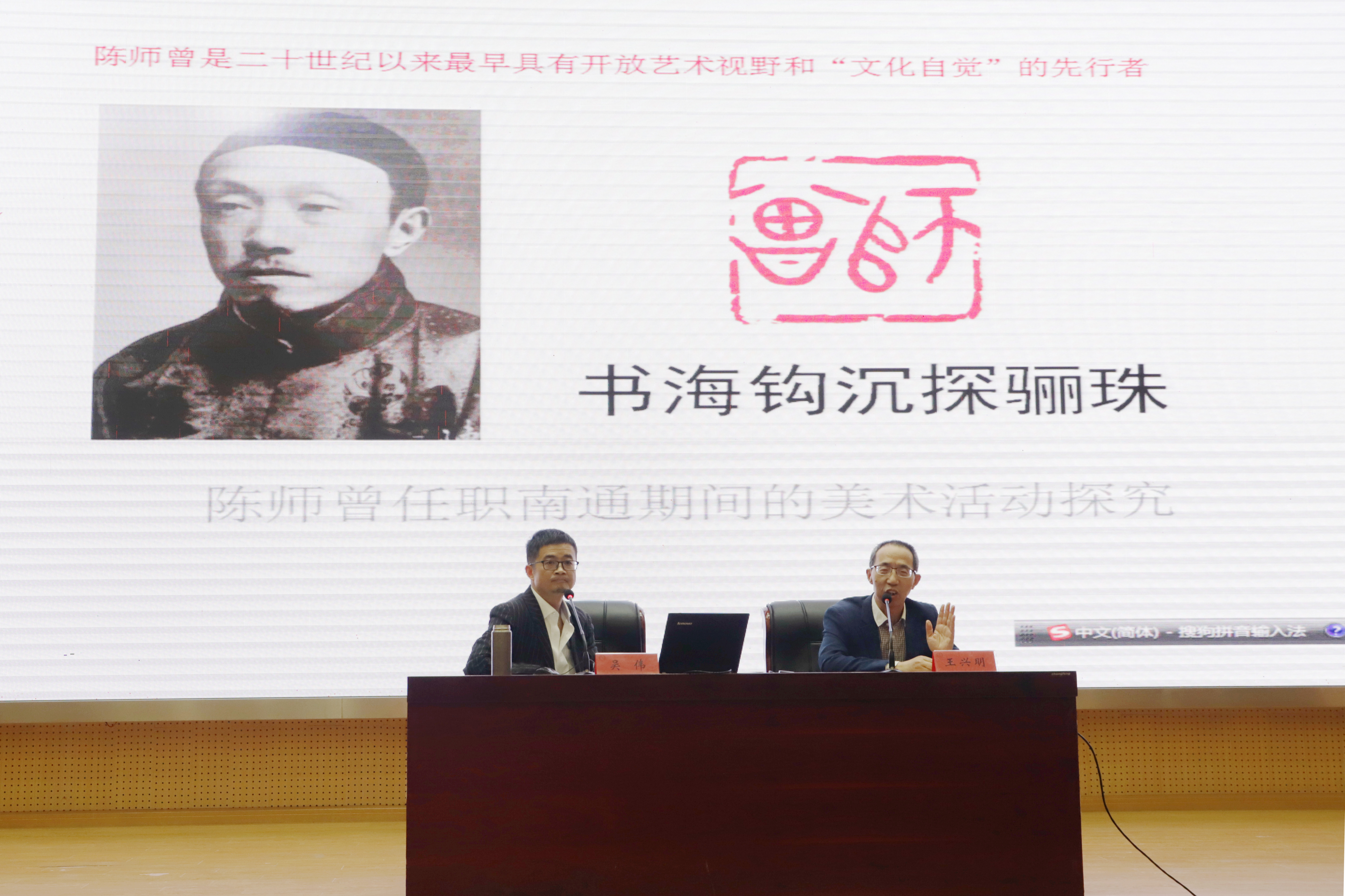 我校历史上,曾出现过多位大师级教师,如王国维、朱东润等,陈师曾也是其中的一位。吴老师从研究本课题的缘起、此课题研究的现状分析、陈师曾生平简介、陈师曾任职南通时间考证、陈师曾来通的原因分析、陈师曾任职南通期间的美术活动探析、研究本课题对研究者的启示暨对于“阅读”行为的理解等角度娓娓道来,使同学们听得津津有味,仿佛回到当时的现场。吴老师的结论是:陈师曾是二十世纪以来最早具有开放艺术视野和“文化自觉”的先行者,他鼓励同学们静下心来认真阅读,增加智慧,改变生命的宽度和厚度,体验精彩人生,实现人生目标。