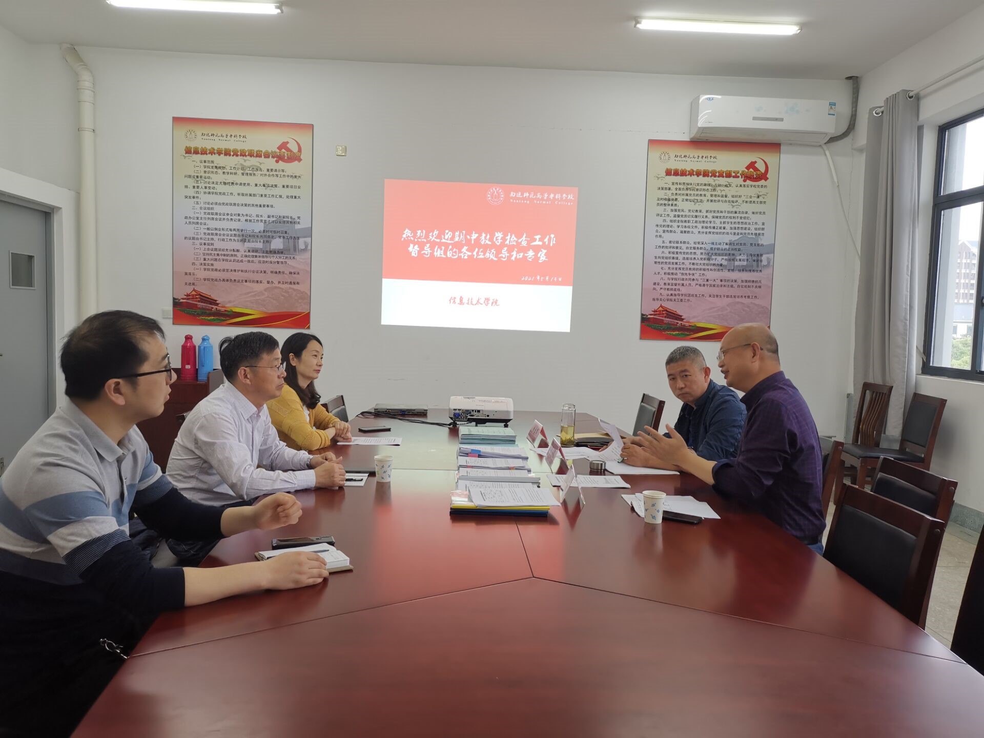 各小组赴学院抽查期间,每个成员先进行随堂听课评课,然后集中听取学院有关教学运行、期中自查、教学质量监控工作等情况汇报;再查阅系(部)教研活动记录、抽查教学计划、教案、试卷;召开了师生座谈会对学院的教学情况进行深度调研。各检查组对检查中发现的亮点及不足,现场进行了逐一逐条反馈,并给出改进意见和建议。