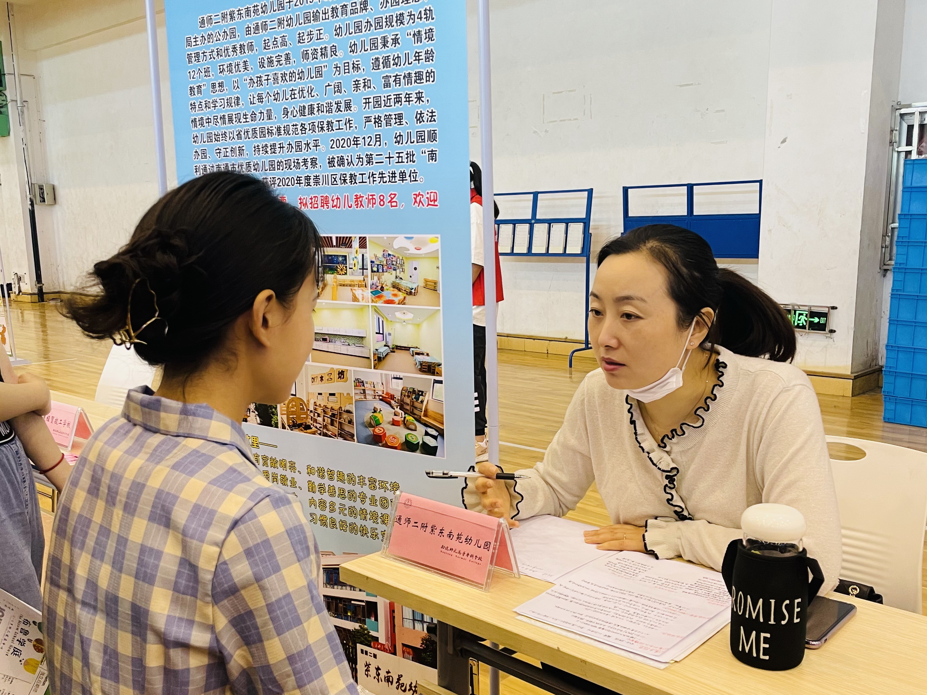 本次校园招聘会吸引了180家用人单位到场,涉及教育、文化、传媒、信息技术、贸易等多个行业和领域,提供近7715个就业岗位,共吸引2500余名学生前来参会。招聘会现场气氛热烈,秩序井然。应聘学生积极与用人单位沟通,相互了解彼此需求,主动向企业展示自己的综合能力。