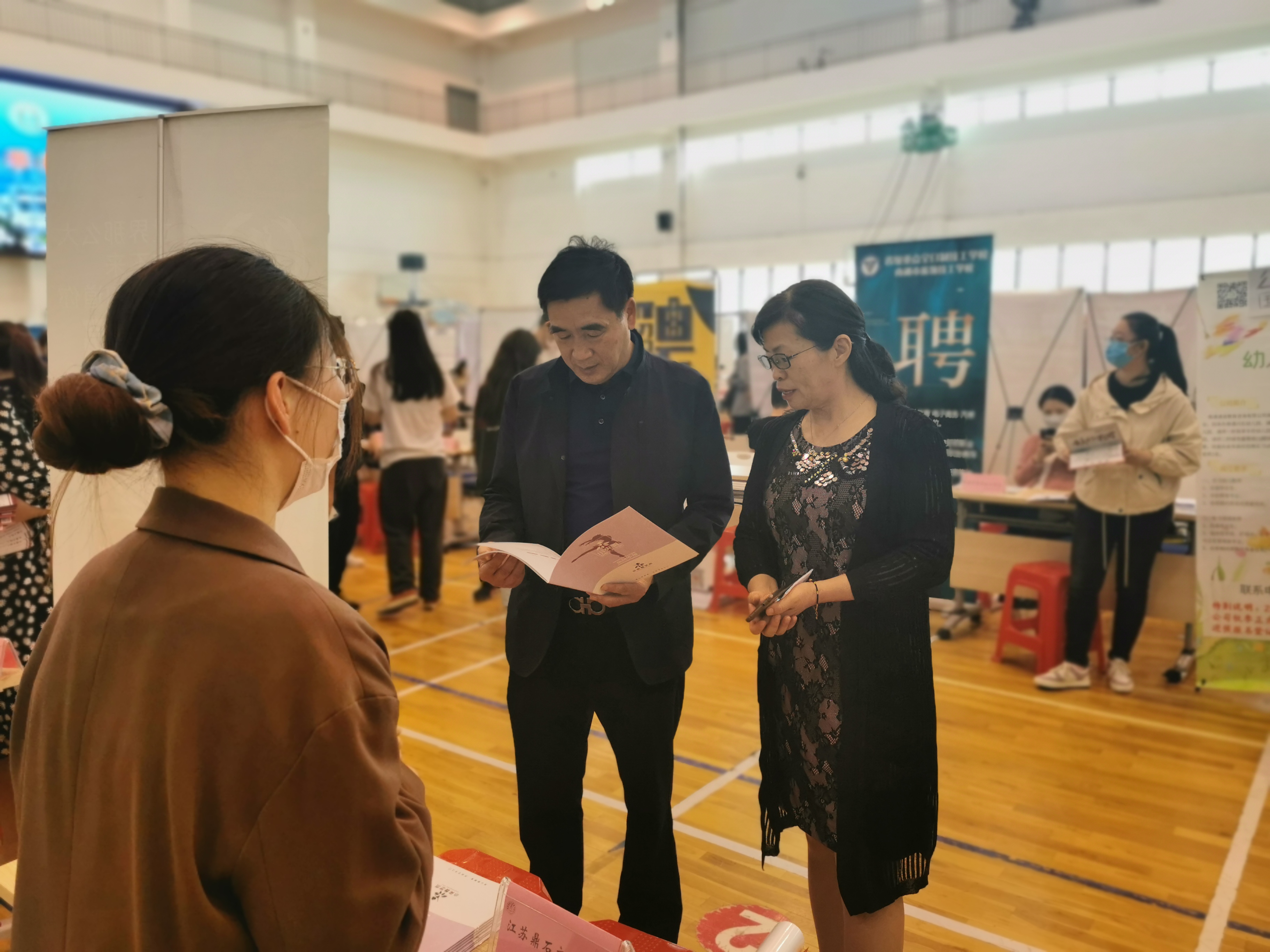 学校党委校长室对就业工作高度重视,认真部署落实我校毕业生就业工作,校党委书记刘锋、校长朱月萍会前进行指导,并亲自到会了解招聘签约情况。
