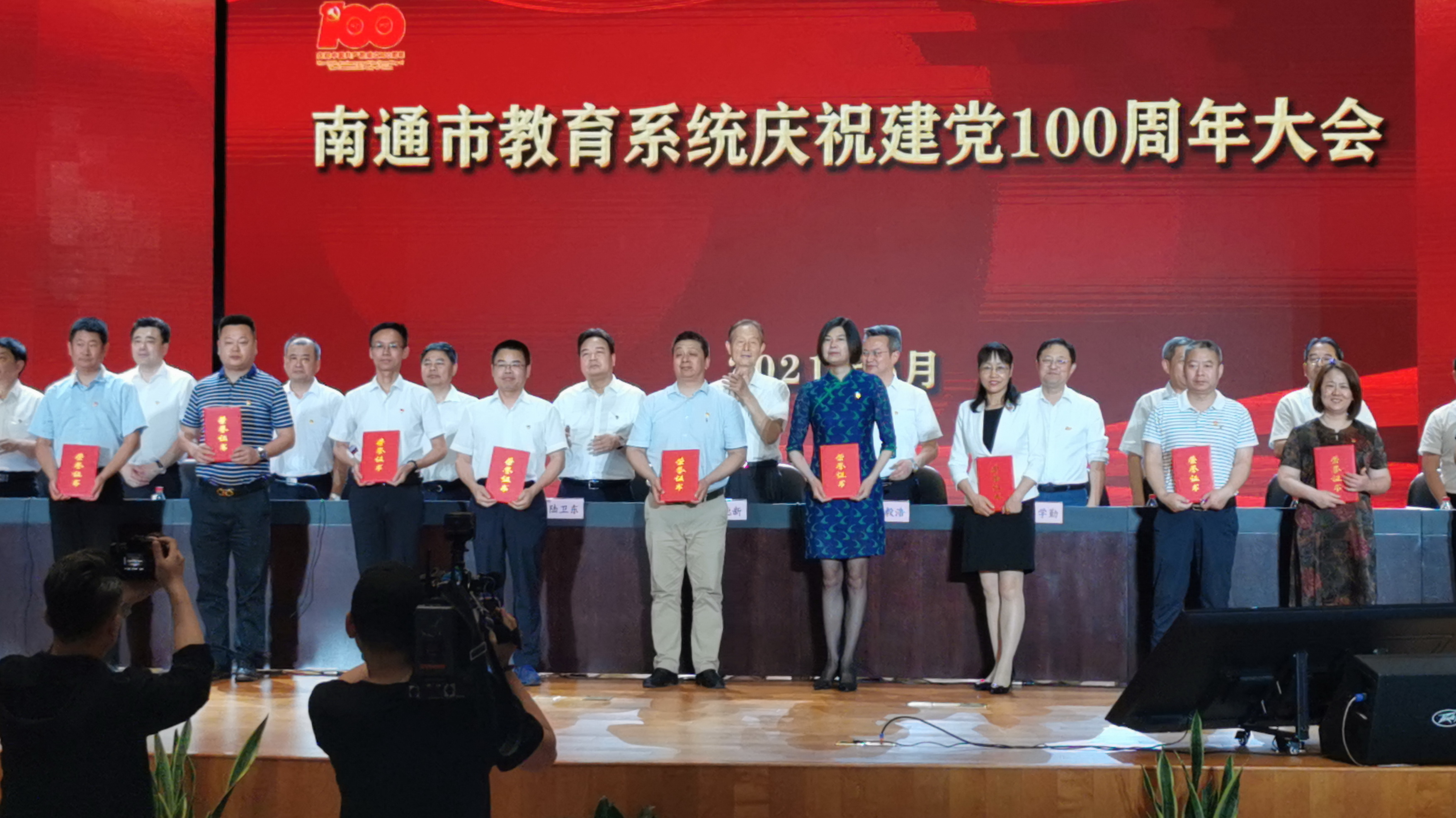 6月22日下午,南通市教育系统庆祝建党100周年大会在紫琅湖实验学校隆重召开。我校音乐舞蹈学院党支部书记虞福美同志作为南通市教育系统“优秀党务工作者”代表上台领奖。在此次市委教育工委“两优一先”表彰中,我校团委书记朱亚林同志和教务处教务科科长许海燕同志荣获南通市教育系统“优秀共产党员”荣誉称号。
