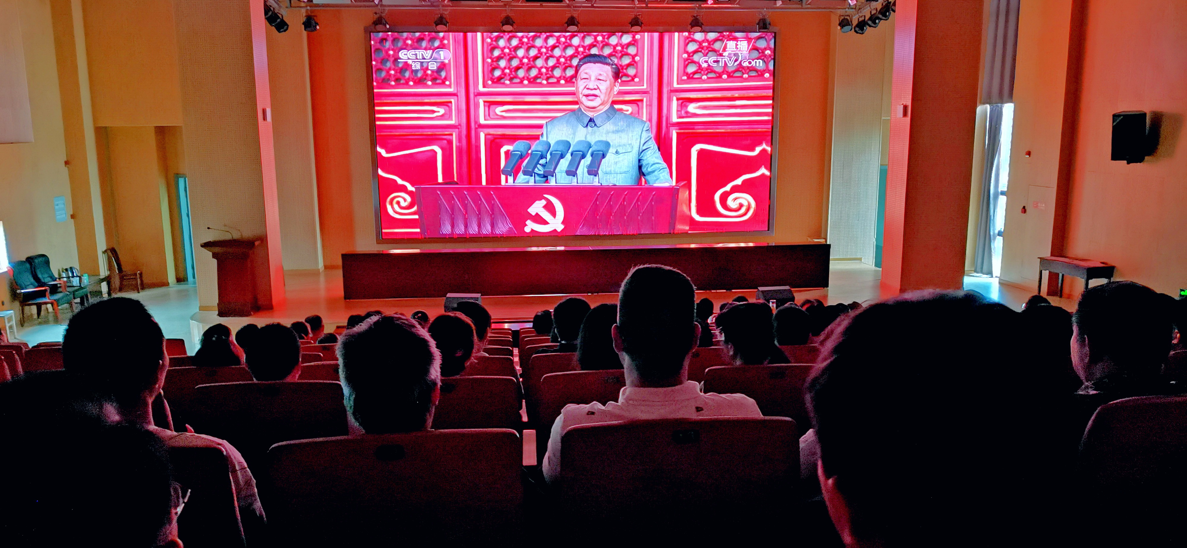 学校党委组织全体党员干部分校区集中收看大会盛况。学校领导班子全体成员参加集中收看。