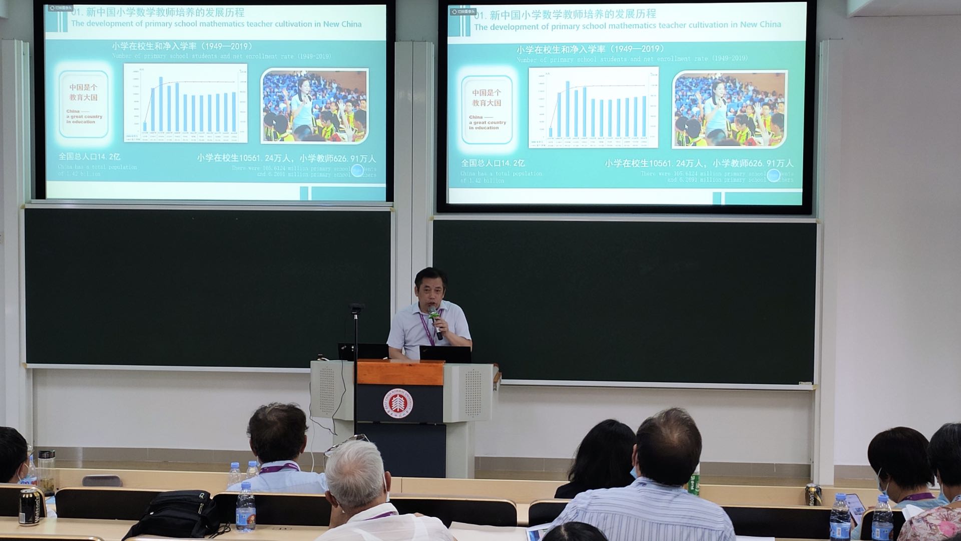 王志刚副校长应邀参加了“小学数学教师职前培养的中国特色”这一团队的研究成果汇报。本专题由“主题汇报”和“现场问答”两个环节组成,“主题汇报”分为开篇部分和培养模式、课程体系、教材建设、培养策略、培养成效等五个模块。王志刚副校长承担了开篇部分和第一模块“培养模式”的汇报。他凭借自己深耕数学教育40年的丰富积累,查阅考证了大量文献史料,通过全面回顾新中国小学数学教师培养的发展历程,提炼总结了中国小学数学教师培养的六大特色,以“小学数学教师培养模式”为题向大会作了精彩汇报,受到与会专家同行的关注和赞誉。