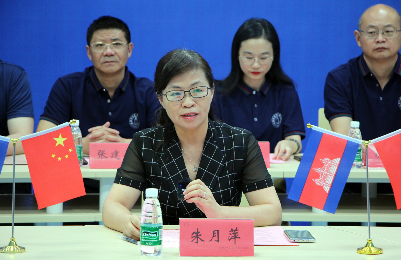 朱月萍在致辞中表示,中柬友谊源远流长,中柬文化交流精彩纷呈,我校有着师范教育的专业特色和优势,在师资培养方面,学校在职前培养和职后培训上都有丰富的经验和丰硕的成果。她希望学员们能够充分利用好学习机会,充实提升自己的汉语水平和业务能力,同时预祝学员们能够通过培训学有所得。她还热忱欢迎柬方学校来我校访问交流,邀请各位学员有机会来校交流切磋。