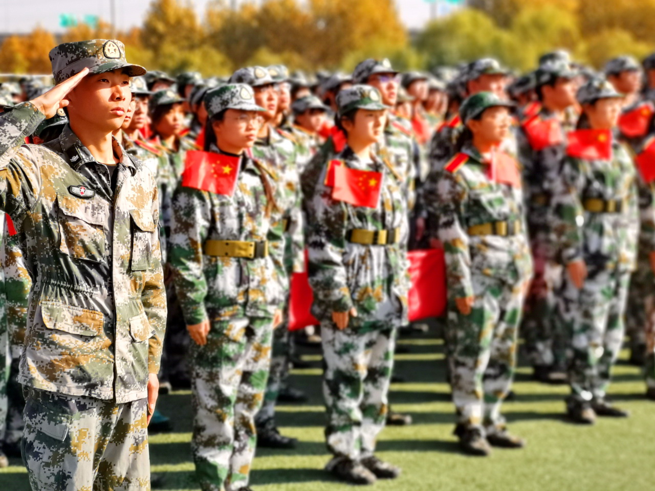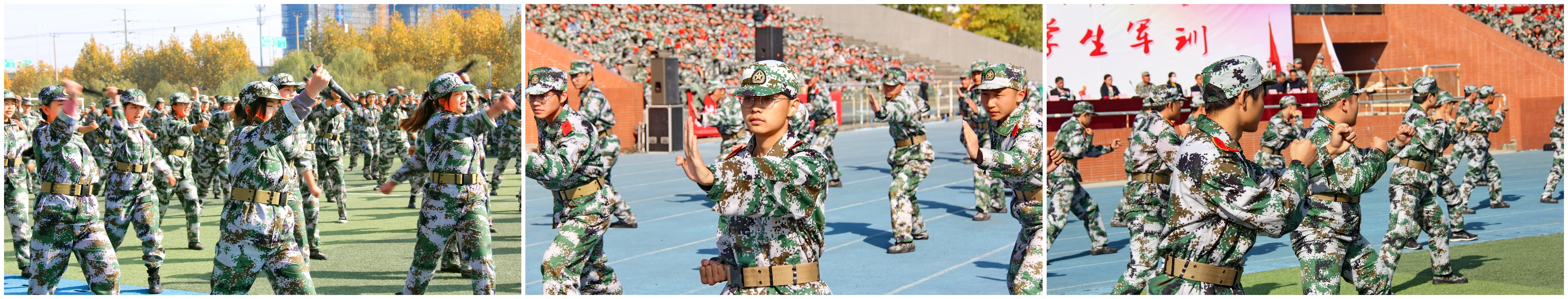 由3000多名同学组成的25个方队精神饱满、整齐划一通过主席台,他们以严整军容和高昂士气展示了新时代青年学生风采。军训队员还进行了队列、女子匕首操、男子擒敌拳表演。