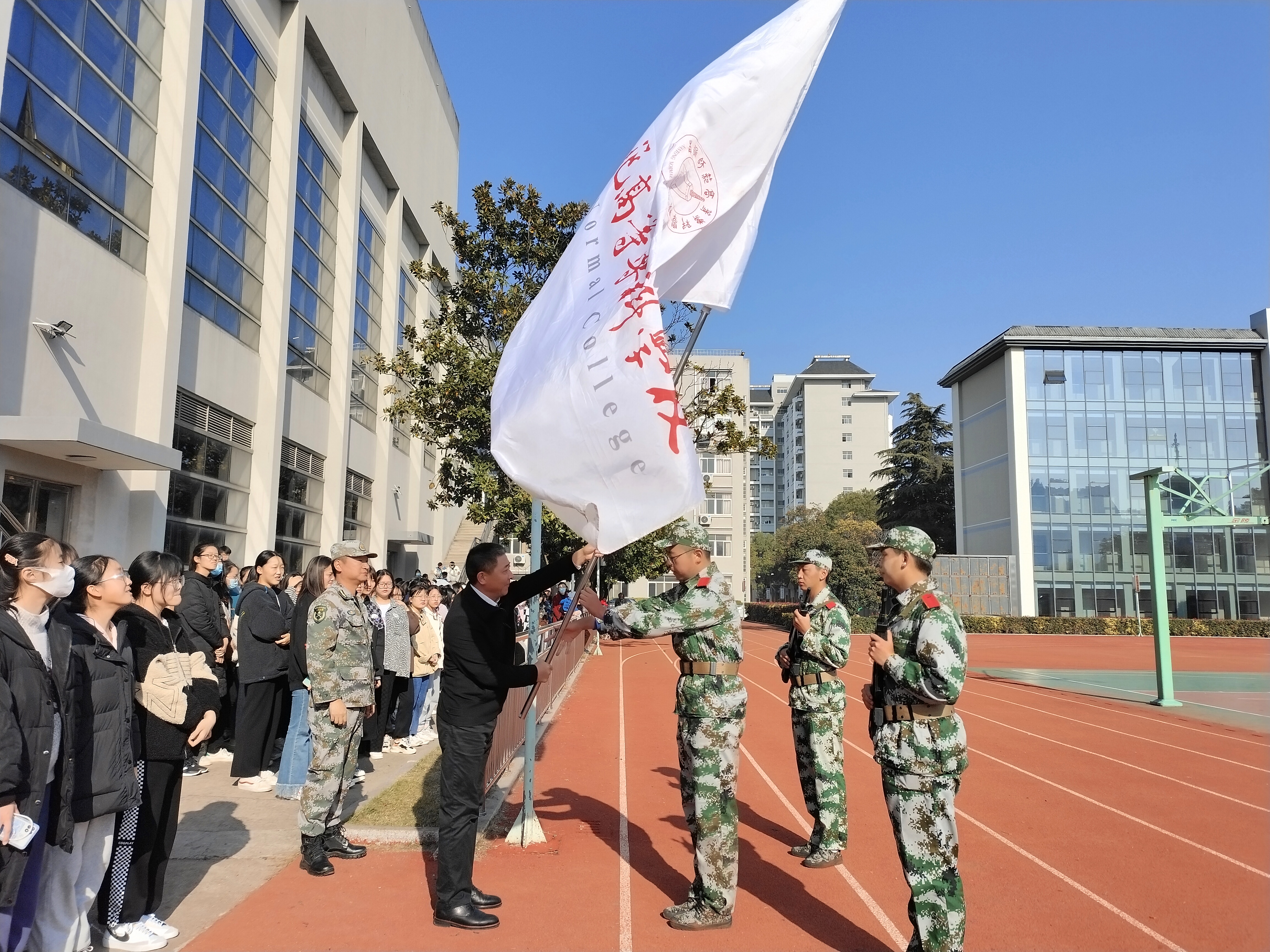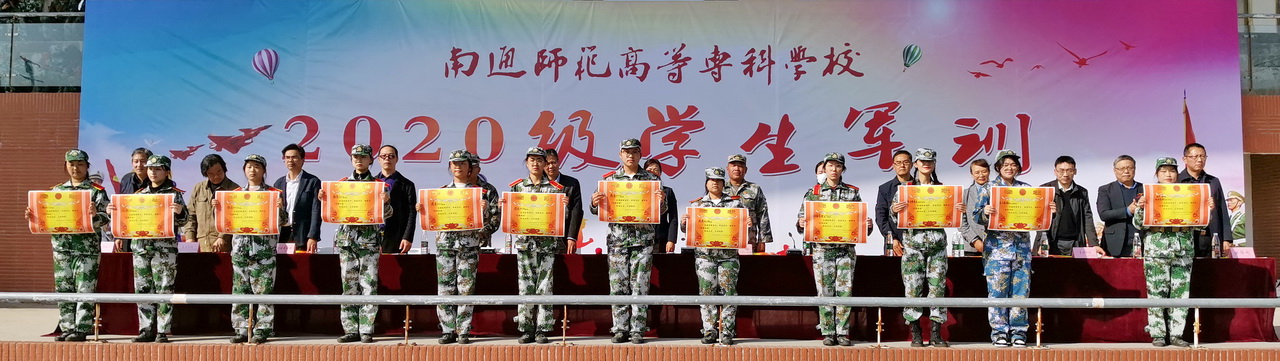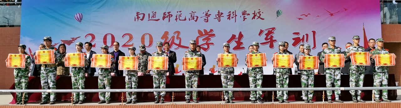 校长朱月萍、副校长杭斌、都樾在三校区分别代表学校向全体教官表示衷心的感谢并致以崇高的敬意;向组织、参加军训并取得优异成绩的全体师生表示热烈的祝贺。校领导充分肯定了同学们8天的表现和成绩,同学们能够克服天气多变、身体不适等困难,严守纪律,严格要求,圆满完成了各项训练任务,实现了自我蜕变和成长之路上的重要跨越;希望同学们能将军训期间锻炼而成的品格和态度,融入到今后的学习和生活中去,以军人的刚毅面对学习的压力,以军人的忠诚永葆理想的挚诚,以军人的担当追求责任的宽广,努力成为有为、有位的一代青年,在南通师范高等专科学校实现最美的青春理想。