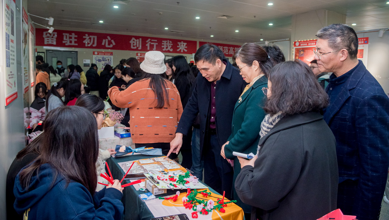 本次创新创业集市是我校大学生创新创业工作领导小组在结合国家政策和疫情封闭式管理条件下探索的一次全校三校区联合活动,所有参展作品都要求跟专业或兴趣等结合的原创作品或加工作品,所有参展项目都要进行模拟真实售买的体验式营销和记账式管理。刘锋书记强调,赚钱不是创新创业教育的初衷,而是在于让学生认真学习和夯实文化知识的同时,把专业知识和思政教育有机融合到专业实践和社会服务中来,让孩子们通过项目式学习小组构建,在实践活动中增长才干,成长团队人,服务周边人,全面提升自身的创新创业思维和能力。教务处张建平处长指出,学校今后还将搭建形式多样的实践平台,提供更多试错容错的机会,让学生真正动起来、活起来,在实践活动中拓展思维和视野,做知行合一的合格大学生。
