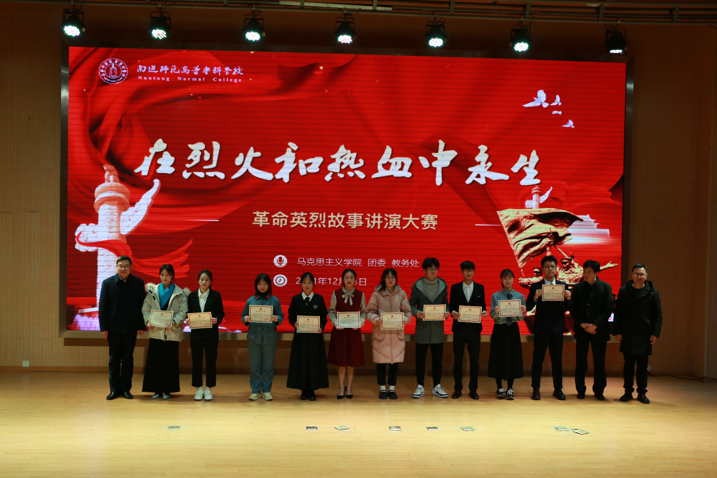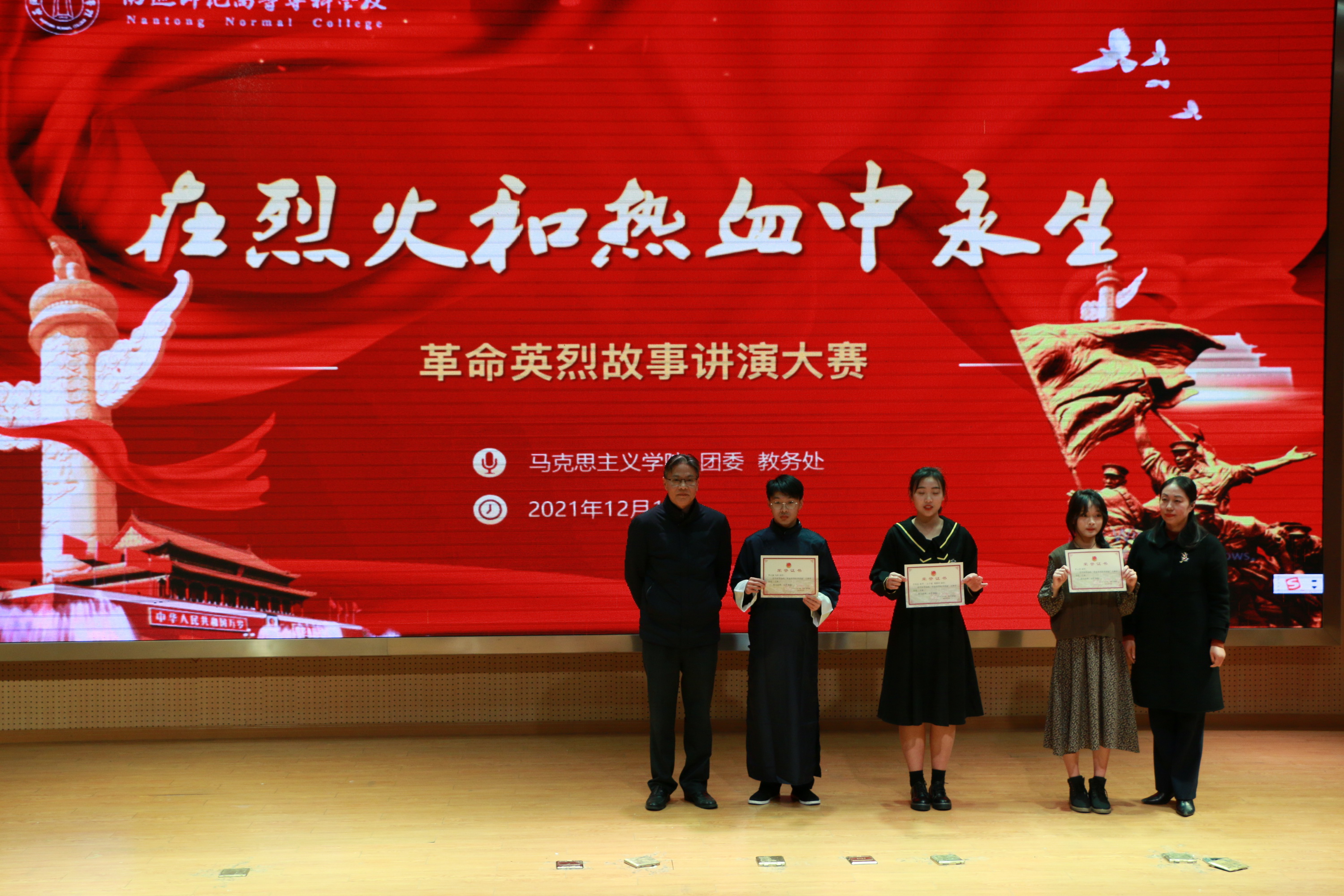 参加讲演大赛的同学们,用生动的讲述、精彩的演绎带领大家穿越时空,回到战火纷飞的年代。回望百年的筚路蓝缕,那神州大地上遍布的都是革命者以鲜血印染的足印、以脊梁堆砌的城墙、以血肉筑就的万里河山。这满眼的红色,拓印着革命先烈的生之伟大!15组参赛选手通过声情并茂的讲述,让一个个感人至深的革命英烈故事跃入眼帘,感染着在场的每一位观众。评委们从演讲内容、语言表达、形象风度、会场效果等方面进行评分,最终评出2组一等奖,3组二等奖,6组三等奖,4组优秀奖。校领导刘锋、潘健、魏荣华亲自为获奖者颁发了获奖证书并合影留念。