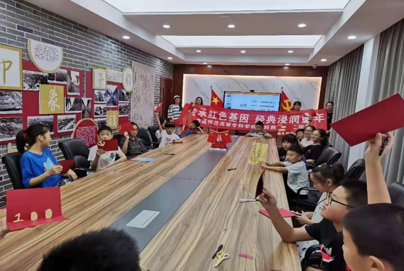 2021年7月开始,项目组8个志愿者小分队对接如皋、如东、海安、海门、启东等县市,走进当地社区、乡镇图书馆等场所开展了线上、线下共11期主题活动。每次活动前,各小组成员先集体备课,明确活动内容和形式,准备有关材料,录制作品音视频;活动中,各组志愿者紧扣主题,积极发挥学前专业特长,通过绘画、手工、讲故事等形式,引导小朋友们了解诵读作品创作的历史背景和有关故事,指导小朋友们正确、有感情地诵读经典诗词,从中渗透红色文化,赓续红色血脉;活动结束后,志愿者们还会把当期线上课程内容(诵读展示、普通话辅导、经典作品导读)发布到群里,供小朋友们在课外进一步拓展和巩固,并对小朋友们在学习过程中产生的问题及时进行一对一的辅导。