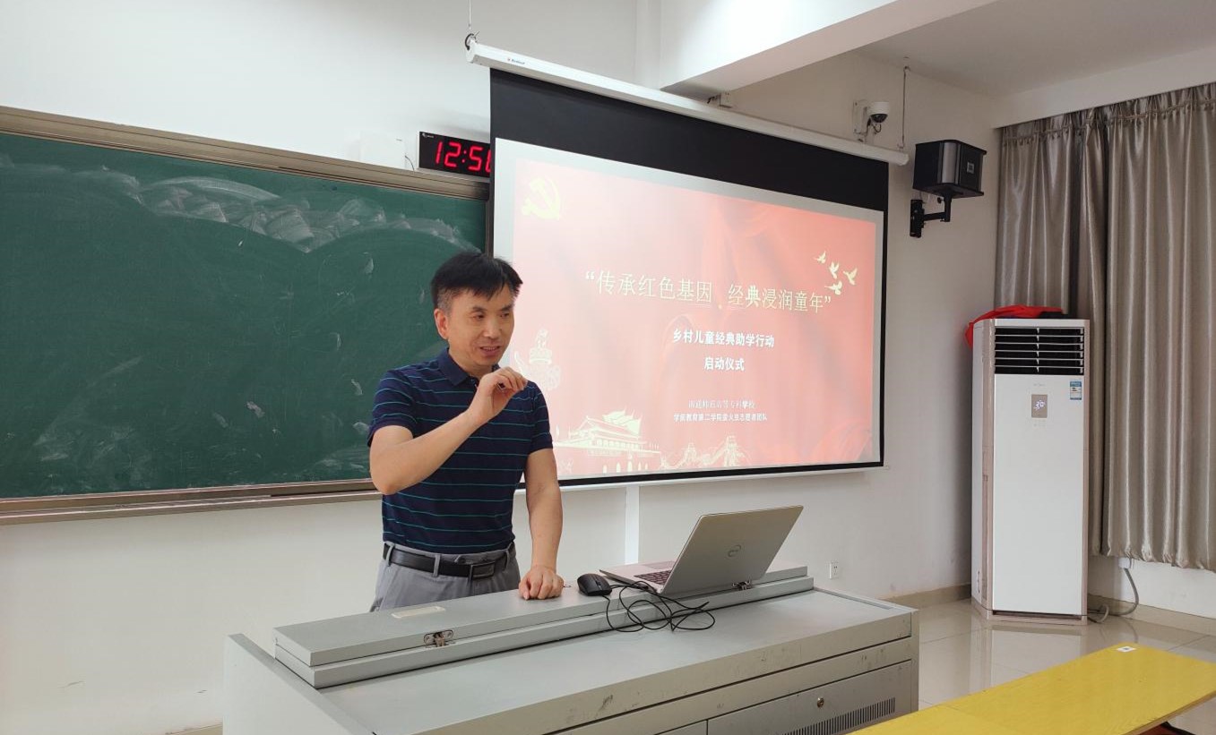 该项目由学校语委办牵头申报,学前二院萤火虫志愿团队组织实施。项目紧扣党史学习教育和传承红色精神,围绕“经典导读、诵读展示、普通话培训”等内容,对乡村儿童开展定点帮扶工作。团队成员由学院团学干部和具有朗诵特长的同学组成,校语委办主任张建明老师和学院团总支书记顾雪琴担任指导老师。